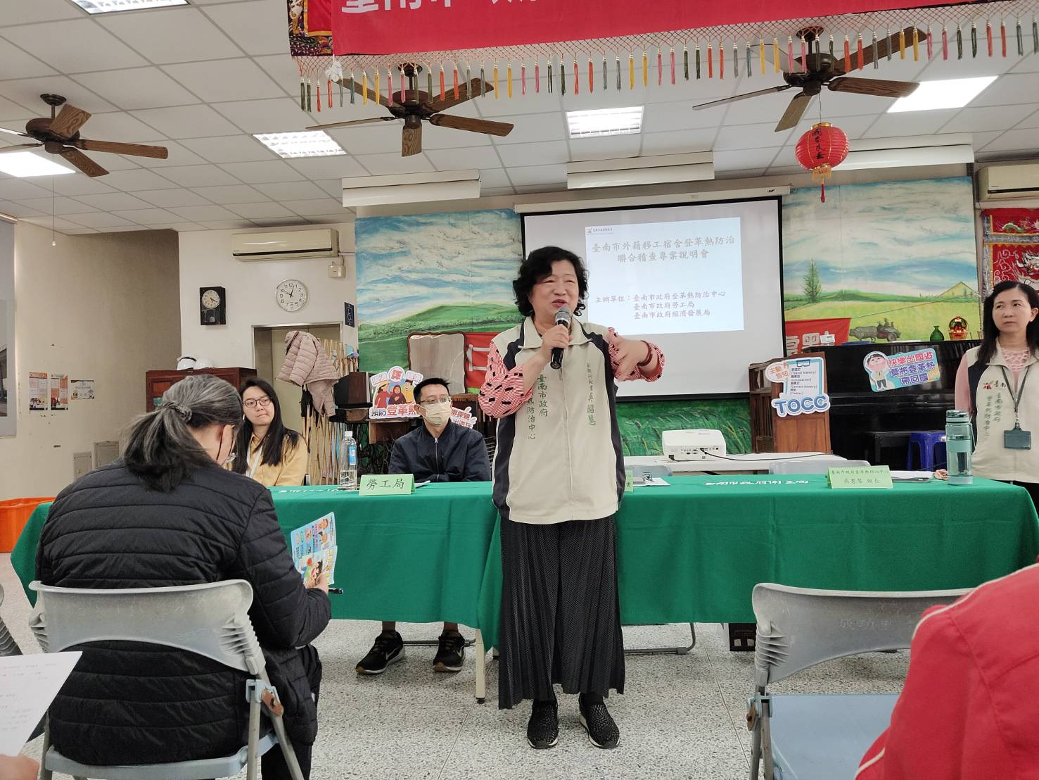 12月12日仁德區由登革熱防治中心 吳秀琴組長,吳昭慧副執行秘書親自解說,包括登革熱防治宣導及說明計畫內容,並一起交流討論。說明會中業者積極提問,包含市府如何查核、疑惑為何南部容易有登革熱疫情、什麼是陽性容器、如何清除孳生源等等,參加人員認真聆聽及交流。預防登革熱須全體市民朋友共同來努力,落實「巡、倒、清、刷」,清除居家積水容器,減少病媒蚊孳生