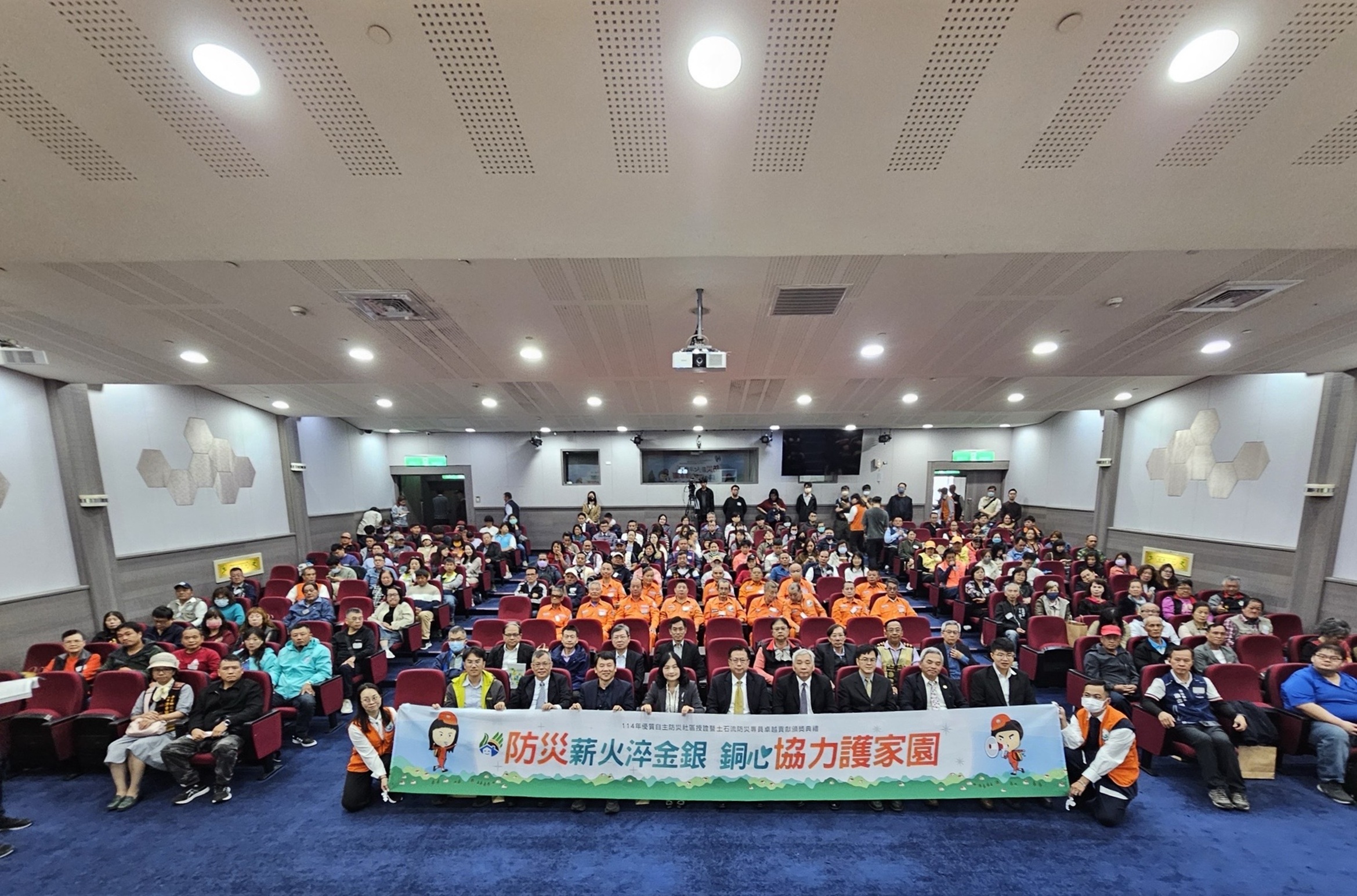 本次典禮以「防災薪火淬金銀,銅心協力護家園」為主題,對本年度優質自主防災社區授予金質、銀質及銅質認證,同時表揚18位服務年滿20年土石流防災專員,並肯定在應變期間疏散撤離成功、表現卓越社區,藉由典禮展現全民防災紮根成果及防災夥伴持續奉獻的精神。