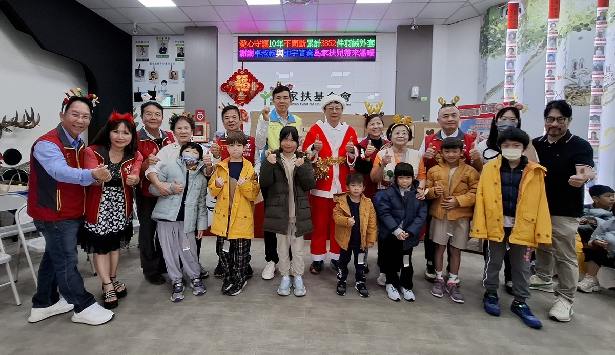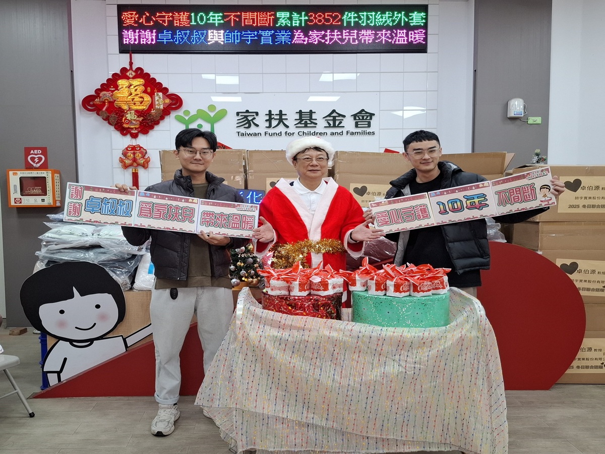 長達十年的聖誕暖流,在寒流來襲前夕準時抵達彰化家扶!熱心公益的前彰化縣縣長卓伯源先生(亦是家扶兒口中的卓叔叔),與來自溪湖鎮製作保暖羽絨的在地企業帥宇實業(股)公司,再次攜手將保暖羽絨外套送達彰化家扶。卓伯源前縣長更在現場化身為「聖誕老公公」,送上581件禦寒的全新羽絨外套。這項愛心善舉累計至今已經第10年,捐贈總數已高達3852件,成為彰化家扶弱勢兒少冬季最堅實的溫暖後盾。