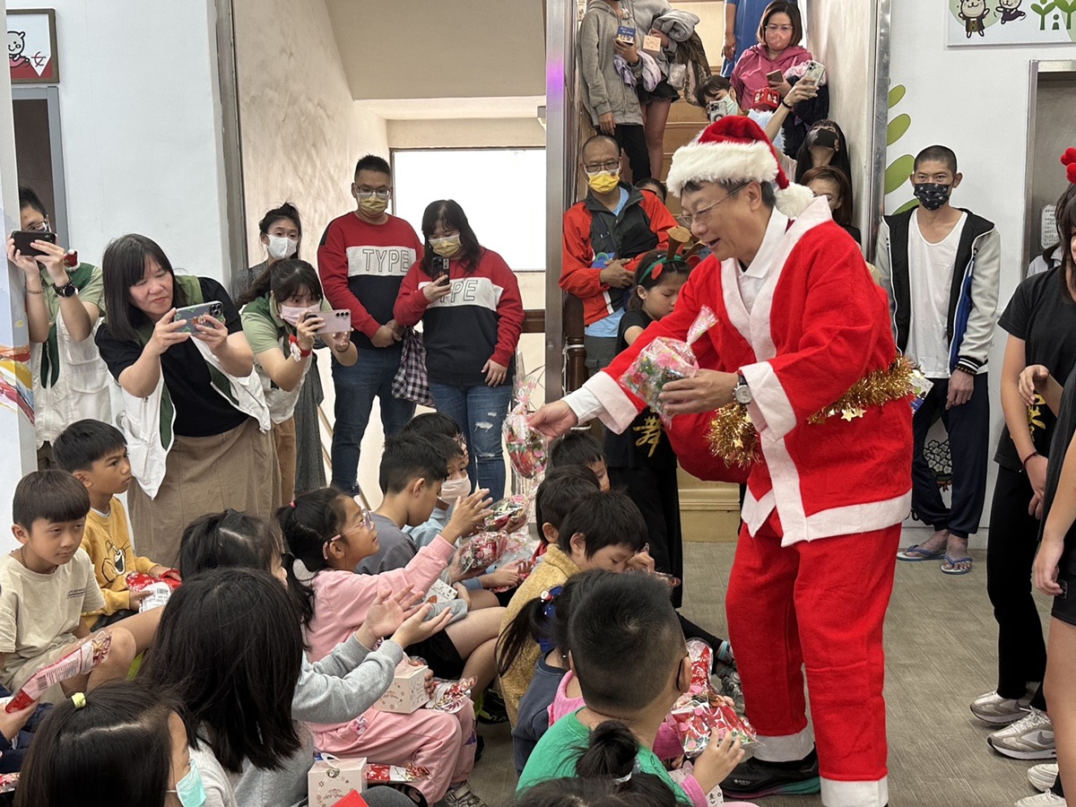 身穿聖誕老公公服裝的卓叔叔,一出場就帶來滿滿一大袋應景的糖果餅乾禮物,分享給家扶孩子們!卓伯源前縣長(卓叔叔)表示:「雖然我的公職身份已卸下多年,但是幫助貧童,讓他們可以看見改變的未來及關心在地弱勢兒少的心意從未改變。帥宇實業是溪湖在地企業,我們共同秉持『取之於在地,用之於在地』的理念,將我們彰化專業生產的保暖羽絨外套送到最需要的家扶兒手中。連續十年,我們希望傳達的是『寒冬送溫暖、關懷不間斷』的信念。」