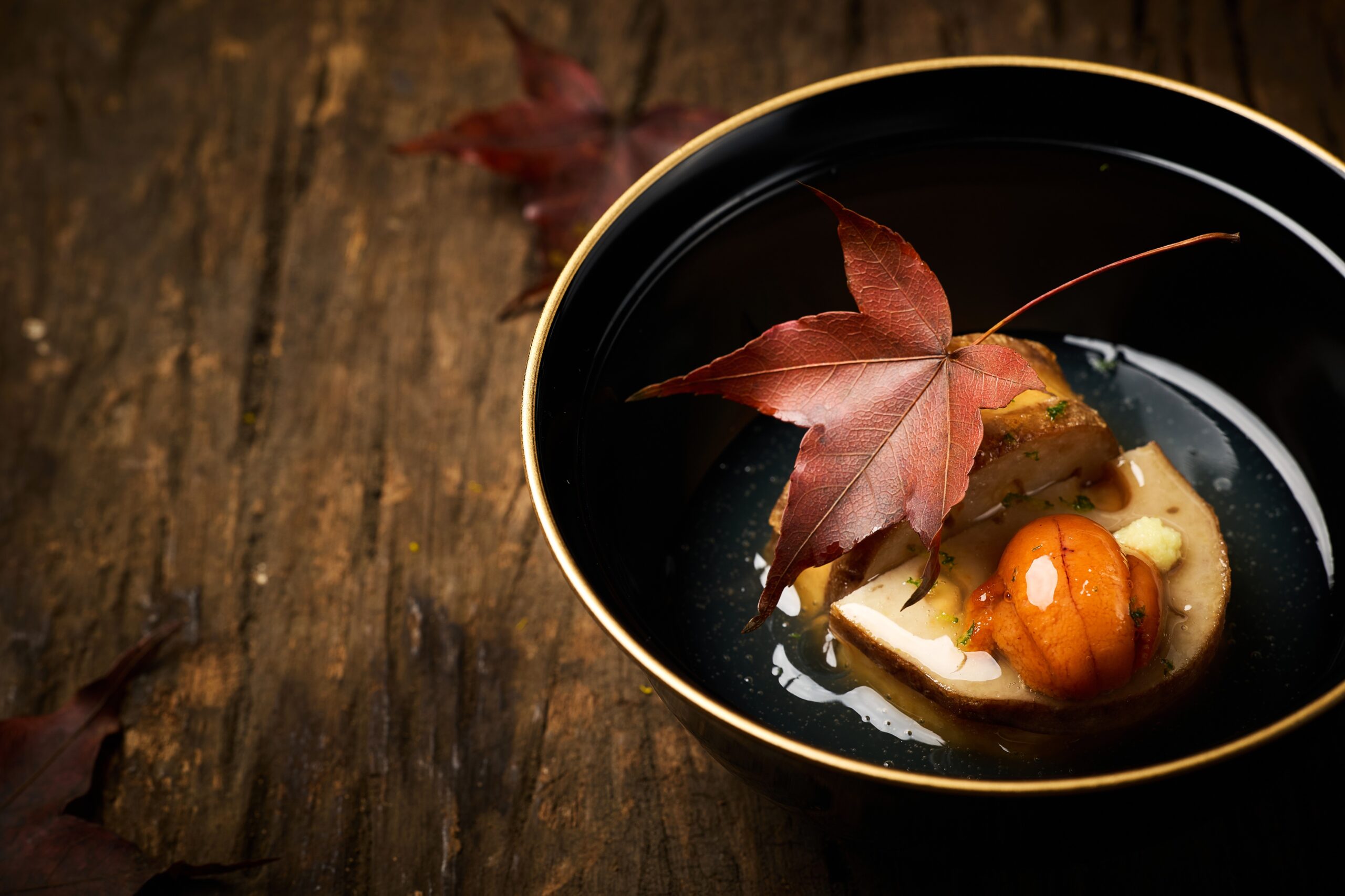 以湯葉、米豆腐與絲綢乳酪呈現黃豆的三種質地,乾淨柔和,開場即帶入冬天的安靜氣息。