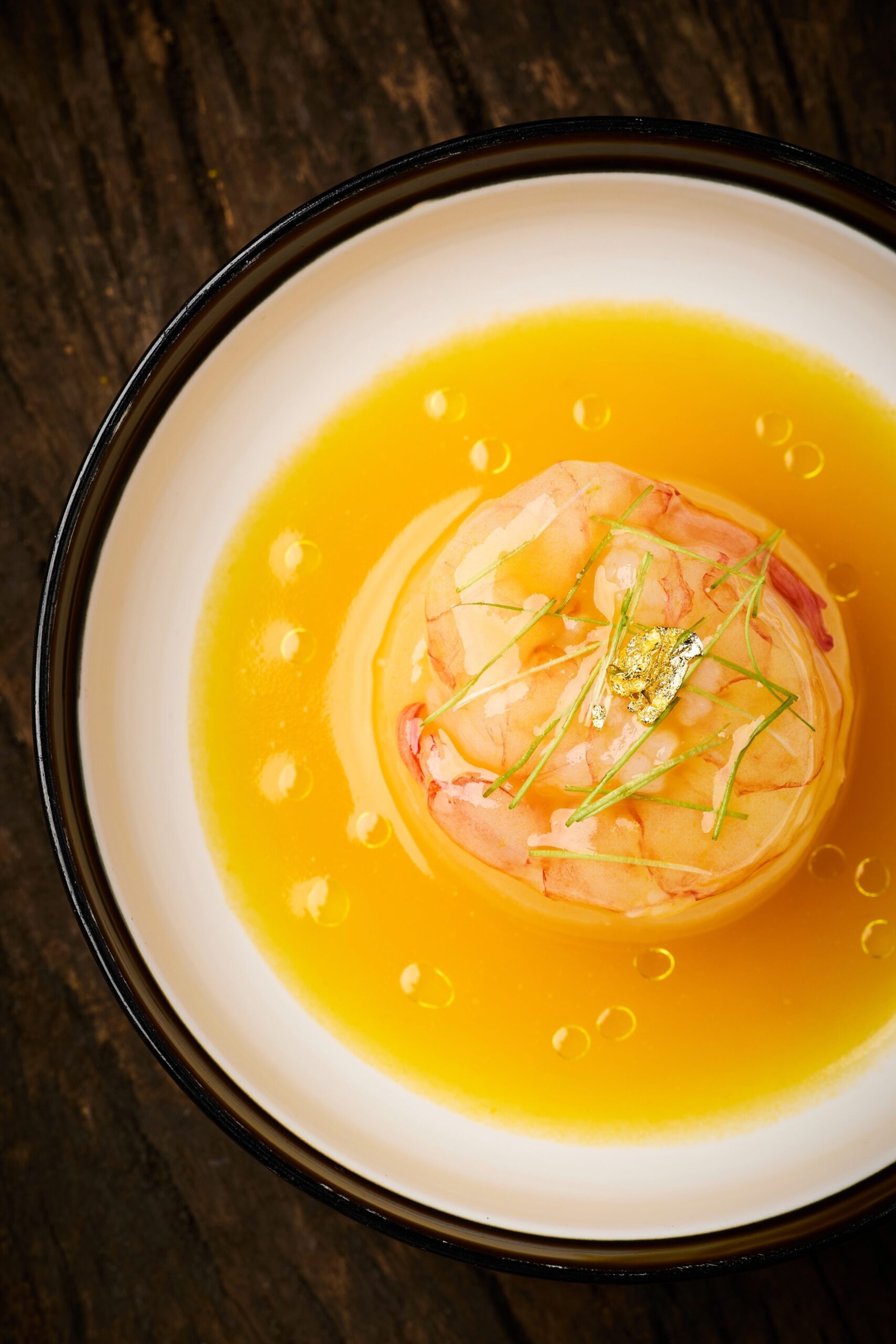 冬蔥糖度高、香氣突出,以煎香蔥白、蔥綠煉油,最後以伊比利火腿煙燻香做收束。
