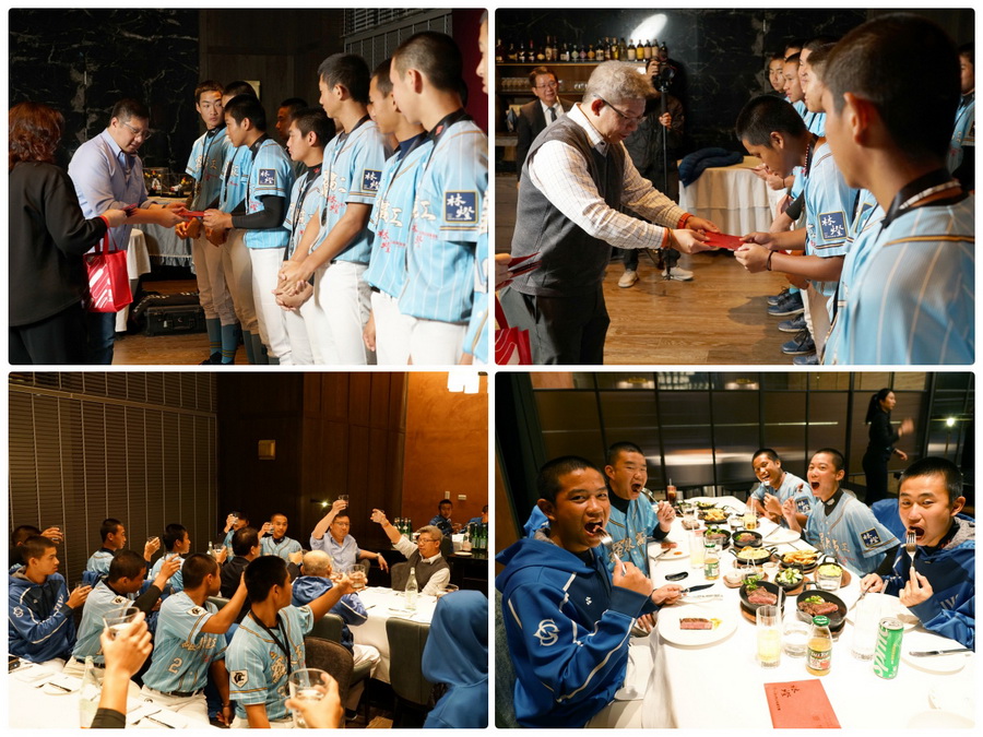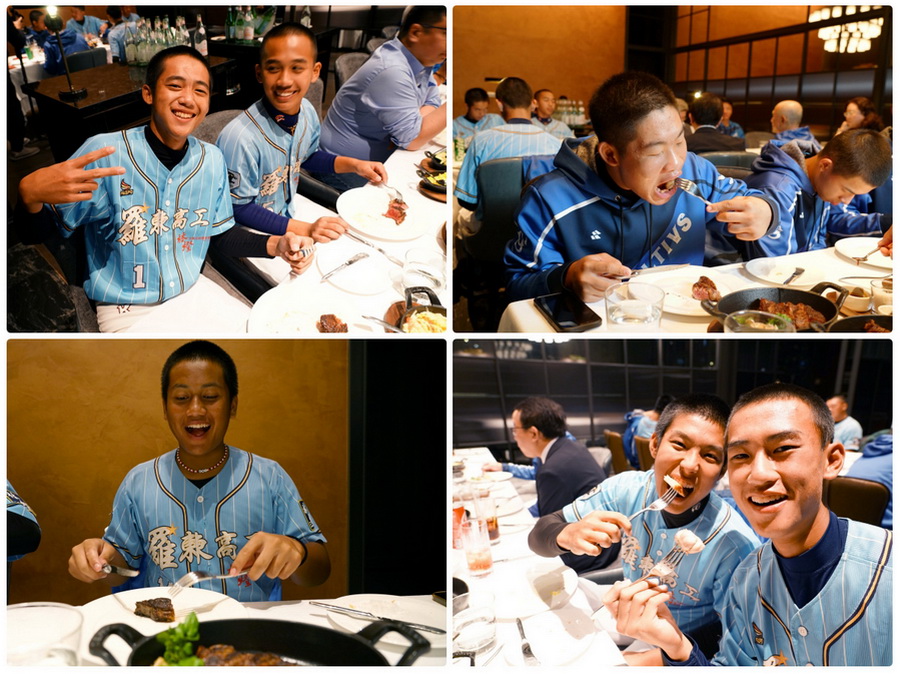 ▲羅工棒球隊員大啖頂級牛排。(圖/林燈文教公益基金會)