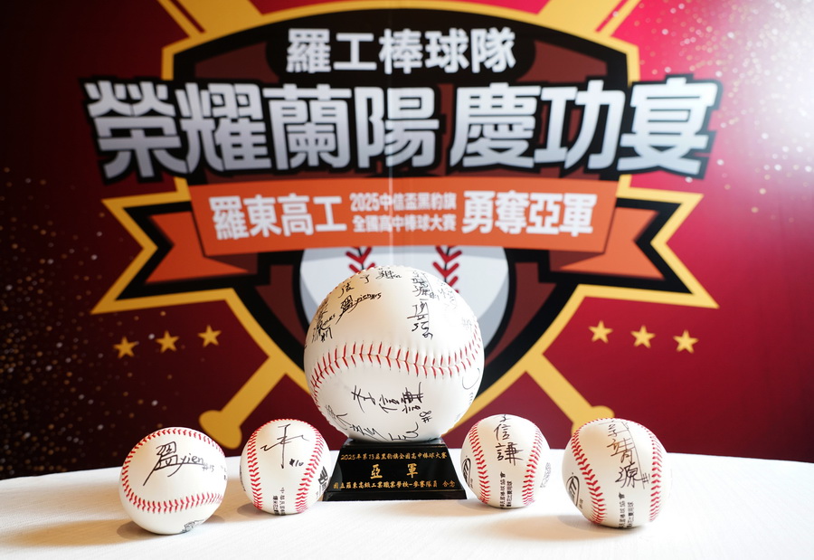 ▲羅工棒球隊致贈全隊簽名球,感謝林燈基金會長期的支持。(圖/林燈文教公益基金會)