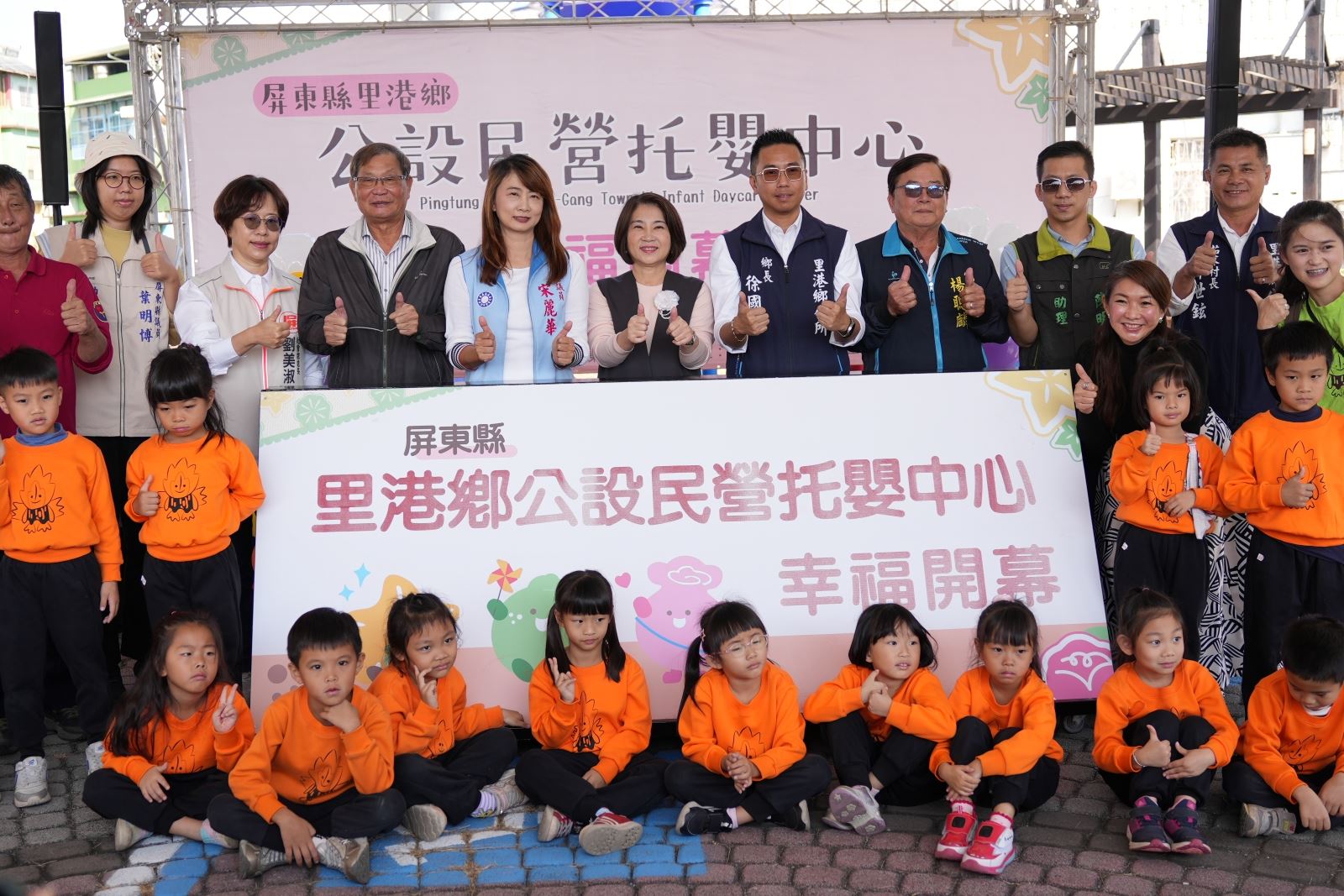 【記者范家豪/屏東報導】 為打造友善育兒的環境,屏東縣政府委託社團法人臺灣兒童及少年福利促進學會承辦里港鄉公設民營托嬰中心,收托0至2歲嬰幼兒,提供36名托育名額,15日舉行開幕典禮,縣長周春米出席時表示,屏東縣現有11家公共托嬰中心,預計118年前完成全縣33處公共托育機構。
