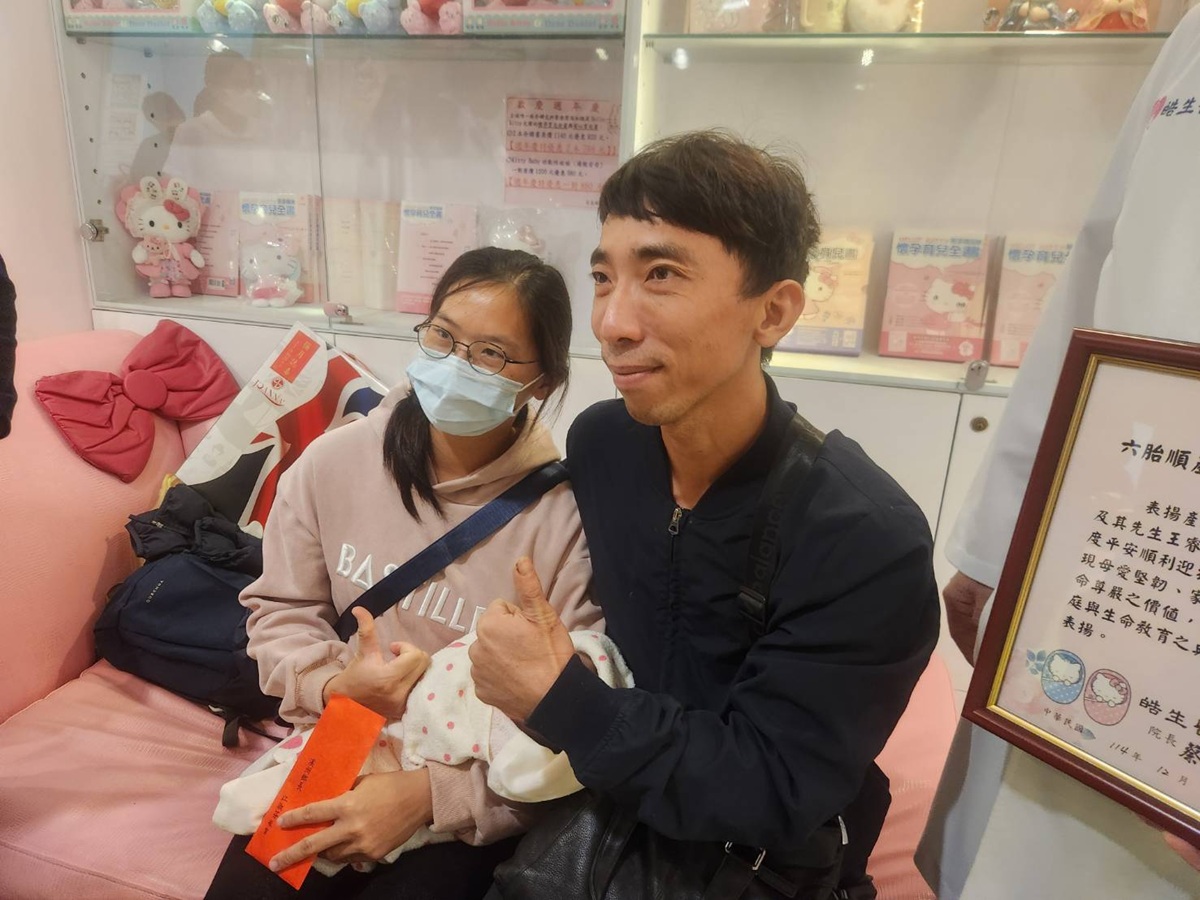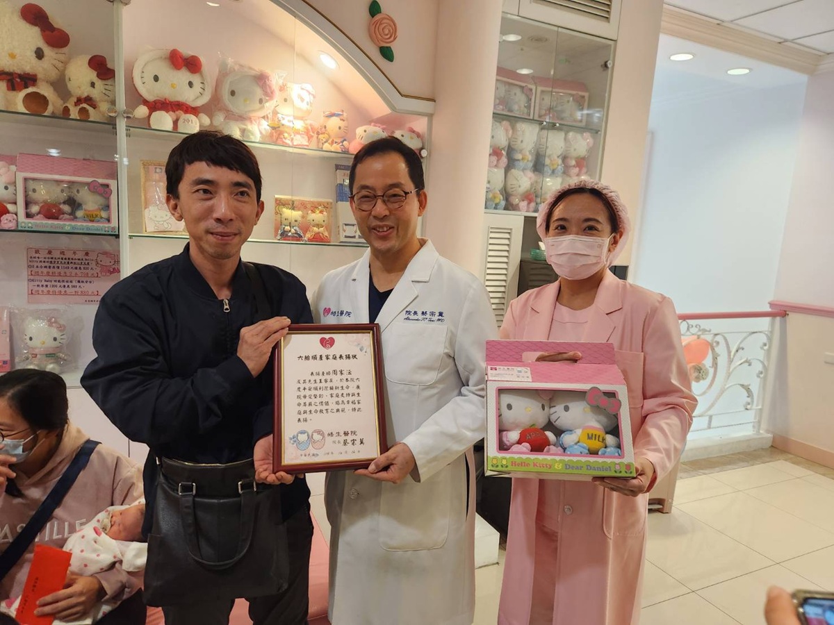 皓生醫院院長蔡宗冀今日特別準備了「出生順產六胞胎表揚狀」和出生大禮包,親自祝賀這個難得的家庭。院長蔡宗冀表示,近幾年能生育到第六胎的家庭真的非常稀少,全國出生率0.8%-0.9%。「他們一個家庭,可以說是肩負了六、七個家庭的未來!」他更笑稱要恭喜王爸爸是「最勇敢、最強壯的男人」,並感謝他們為提振社會生育力做出的貢獻。