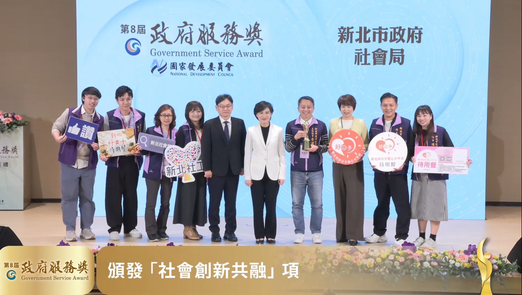 有「公部門奧斯卡」美譽的第八屆「政府服務獎」日前揭曉,新北市政府社會局推動的「新北市好日子愛心大平台待用餐計畫」脫穎而出,榮獲「社會創新共融」獎肯定。新北市長侯友宜17日親自獻獎表示,待用餐計畫成功媒合民間愛心與在地餐飲資源,讓有需要的市民能夠「吃得到、吃得安心」,截至目前累計受益人次已超過72萬,讓溫飽成為最普及、也最溫暖的社會支持。