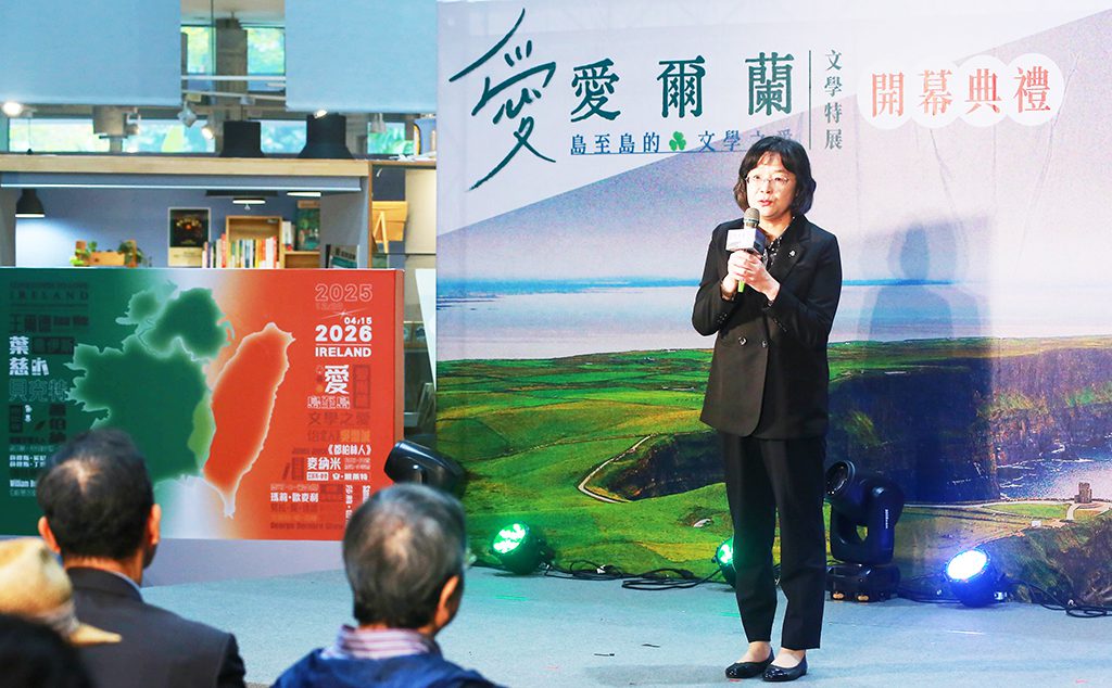 文化部常務次長徐宜君表示,文學是最具穿透力、也最能觸動人心的文化媒介,臺文館積極引介國際文學、深化文化交流,繼捷克文學展後,此次愛爾蘭文學特展再次促進臺灣與世界的文化交流與對話,臺灣與愛爾蘭同為島嶼社會,地理距離雖遙遠,卻在殖民歷史、文化認同與語言處境上展現深刻共鳴。本次展覽透過王爾德、葉慈、喬伊斯等作家的作品,呈現愛爾蘭如何將歷史創傷轉化為世界級文學能量,並與臺灣的歷史經驗形成對話,不僅是文學回顧,更是一場國家歷史與文化精神的相互映照,文化部未來將持續支持臺文館在文學研究、國際合作及青年閱讀推廣上的發展,也期許臺、愛交流以此為起點,有更多深度的合作。