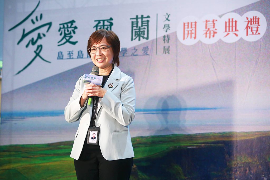 ▲臺文館陳瑩芳館長致詞時分享愛爾蘭文學展的策展緣起。.
