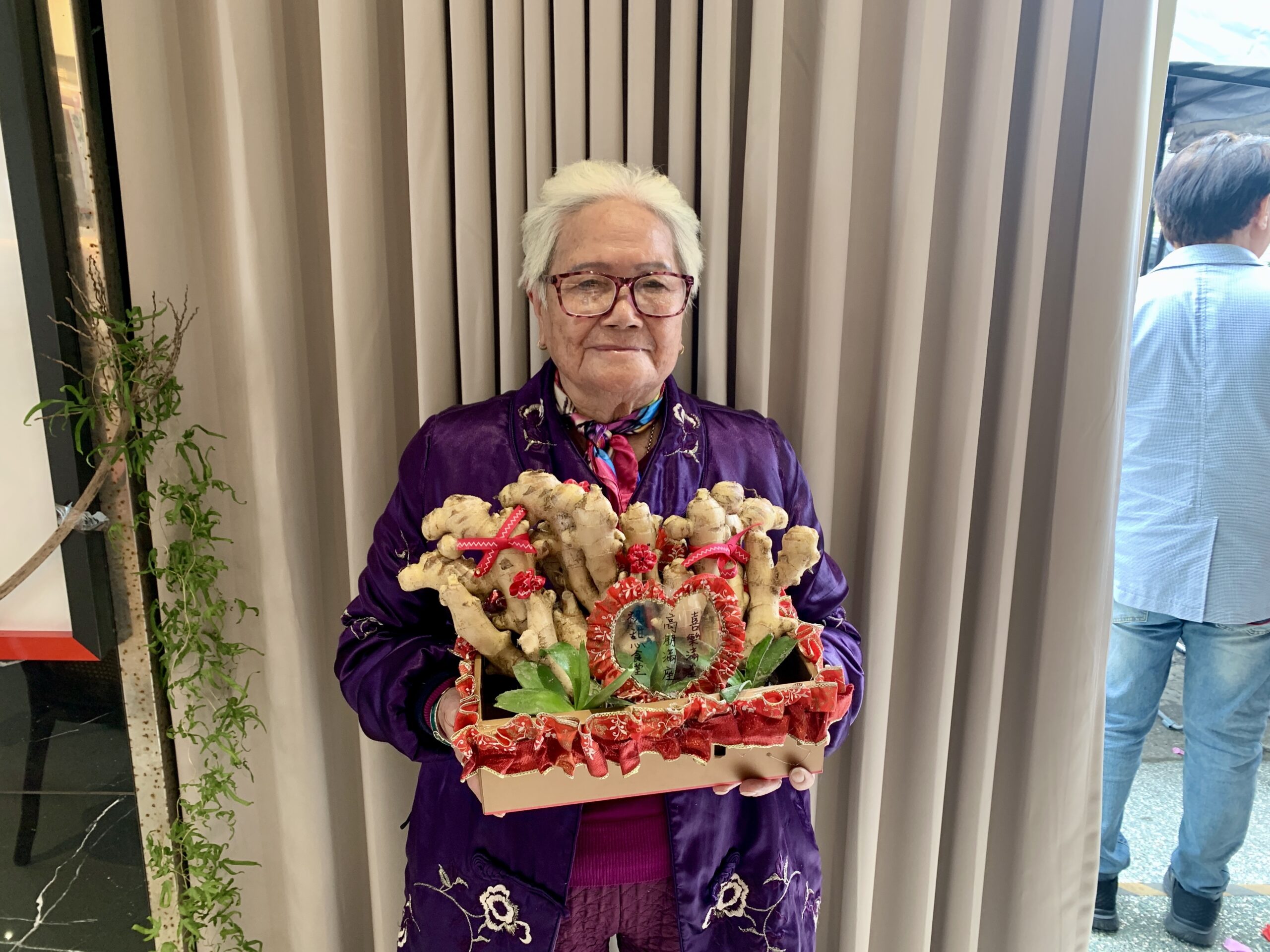 ▲長輩親手以「薑」製作的祝福禮物,祝賀甜心食堂「萬壽無疆(薑)」。