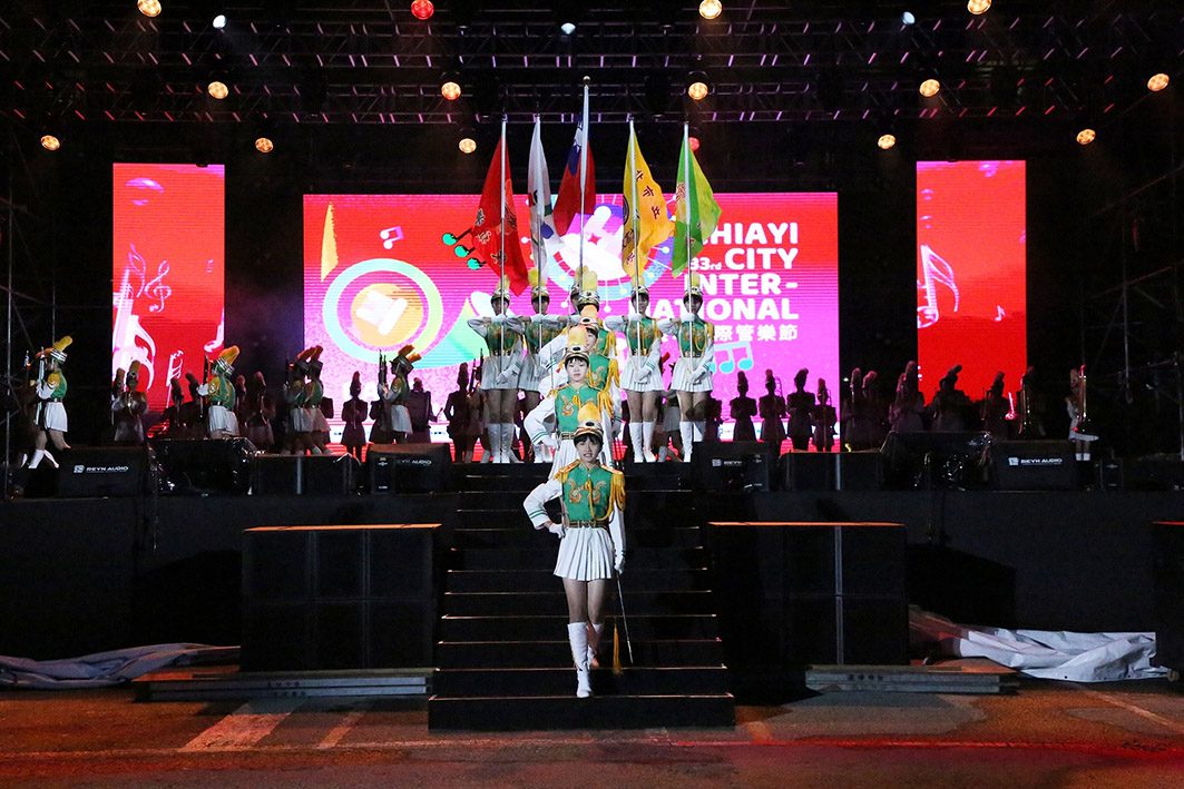 今年晚會行進演出陣容豪華,由國內外6支知名隊伍輪番登場,包括嘉義市南興國中、臺北市景美女中、臺北市第一女子高中、臺北市建國中學、日本奈良學園大學與熊本工業高等學校吹奏樂部等隊伍。各團隊以精準步伐、旗舞層次、以鼓聲與銅管聲浪震撼全場,現場驚呼聲不斷,氣氛熱度持續攀升。
