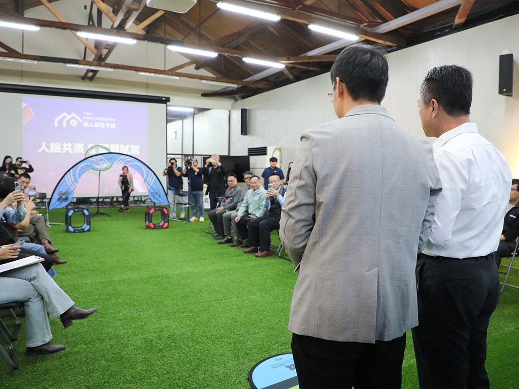 今日的宣傳記者會上,主持人也邀請縣長翁章梁上台示範操控無人機穿越層層障礙。翁章梁指出,無人機國家隊落腳在嘉義縣,未來中央更將投入80億元建設研究創新基地及製造基地,因此,培養在地學子訓練及熟悉無人機技術至關重要。透過營隊在孩子們的心中種下種子,未來,若有興趣與機會,這些孩子或許能選擇留在家鄉,助力無人機產業在嘉義的發展,創造更多可能。