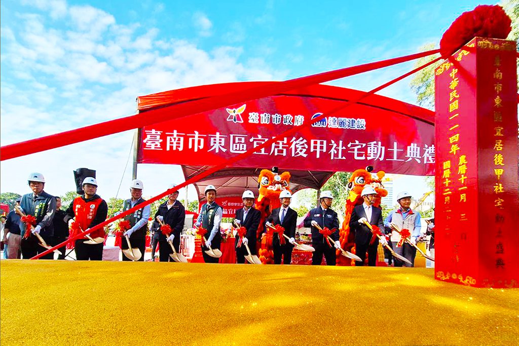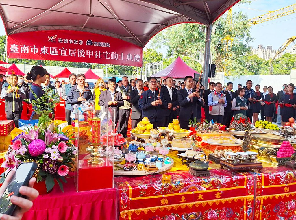 【記者吳玉惠/臺南報導】 台南市政府今(18)日於東區舉行「宜居後甲」社會住宅動土典禮,象徵市府透過公私協力機制,持續將都市更新成果回饋市民,為落實居住正義再添重要里程碑。市長黃偉哲親自主持動土儀式,與內政部國土管理署署長吳欣修、內政部國土管理署南區都市基礎工程分署分署長林敬賢、總統府國策顧問王永順、地方民意代表等共同見證這項指標性市政建設正式啟動。
