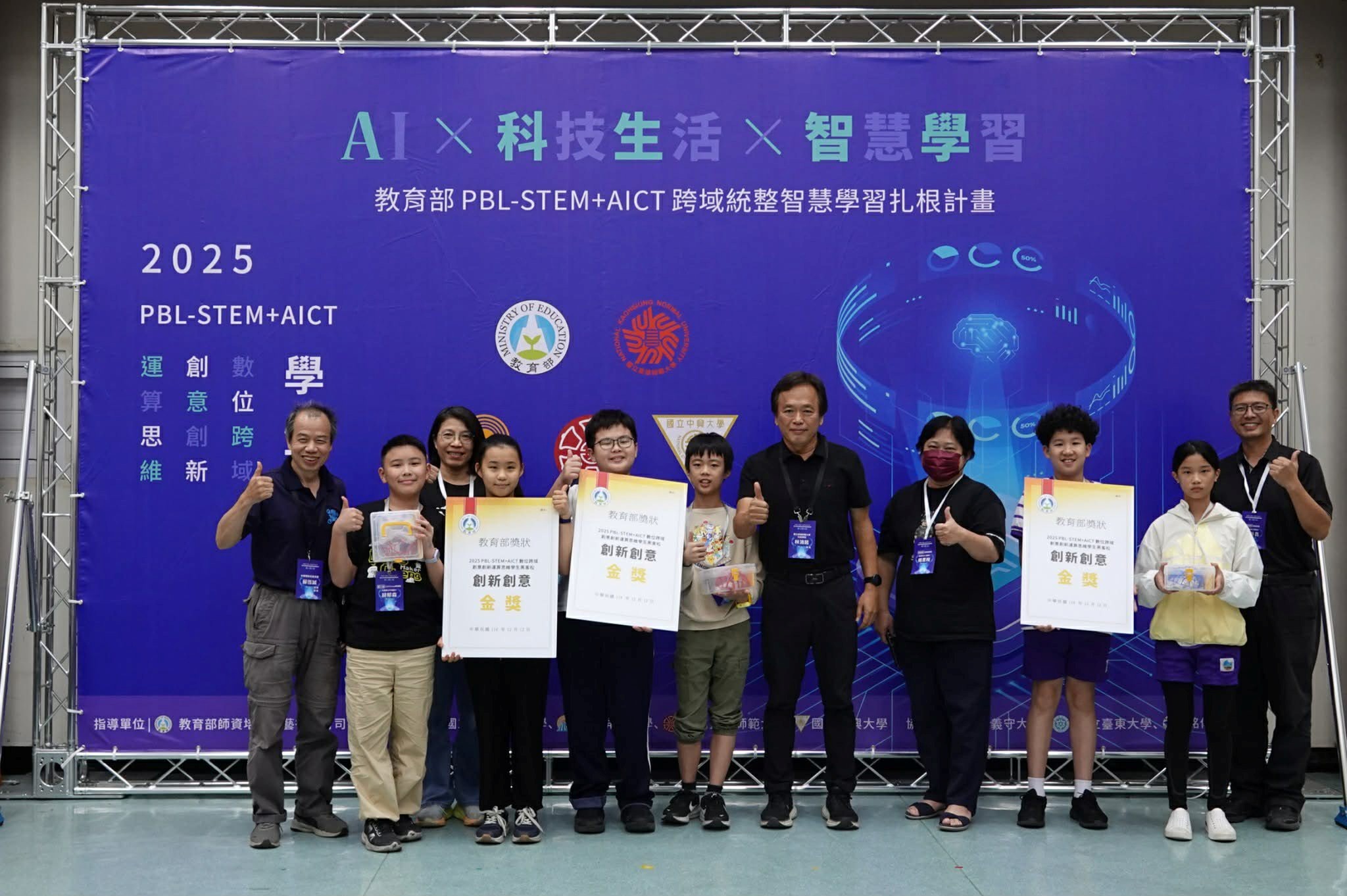 「2025 PBL-STEM+AICT 數位跨域-創意創新運算思維學生黑客松」日前在國立高雄師範大學舉行,花蓮縣中城國小在眾多參賽隊伍中脫穎而出,榮獲國小組金獎,展現學生在運算思維、程式設計與跨域學習方面的亮眼成果。