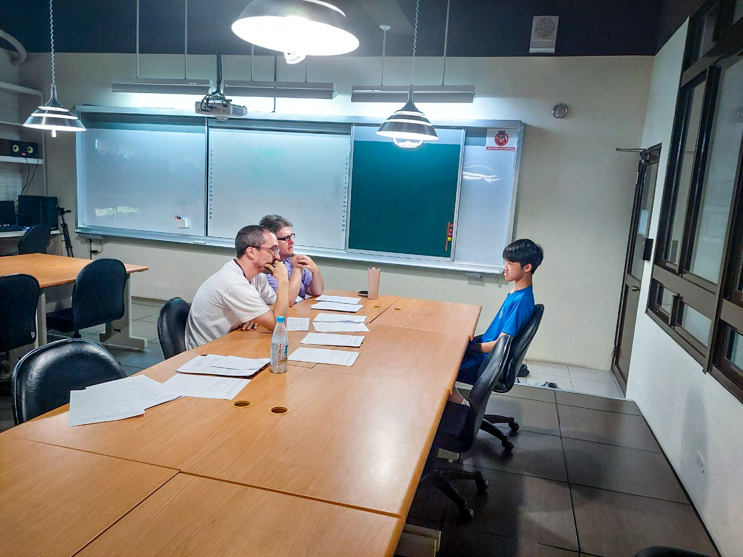 學生們專心的聽講著外籍教師的授課,客製化的課程更受到學生們的喜愛。畢業後就讀華盛頓大學電機工程和UC Berkeley(加利福尼亞大學柏克萊分校)機械工業(Mechanical Nngineering),現在在矽谷做通訊設備,擔任硬體工程師的Billy,以及就讀印第安納普渡大學電腦資訊科技,畢業後返臺接手家族企業鐳射設備代理商的Jeffrey,兩位校友更直言UEIS英美語系教學的優點,主要在於使用美國的課綱,與臺灣的方式比較為不同,更容易銜接到國外大學的生活,也較容易理解到大學教授的授課內容。此外,UEIS在這邊相比一般的學校更注重課外活動,例如運動、音樂或是第二外語,相較於國內一般學生也更多元,這也是國外學校比較看重的部分。
