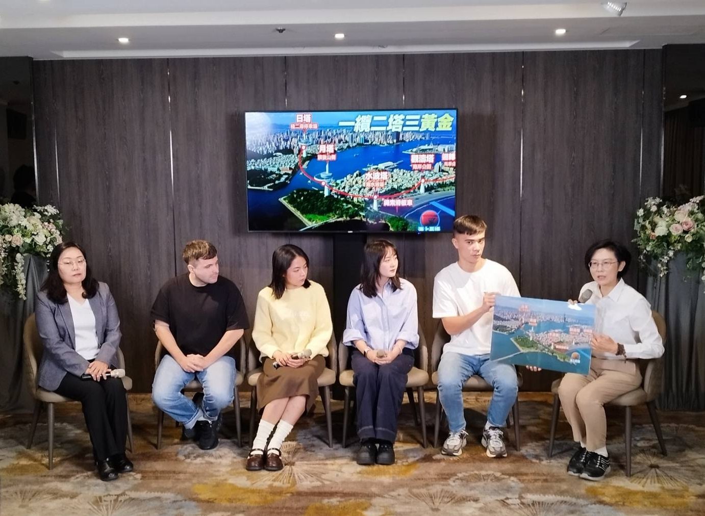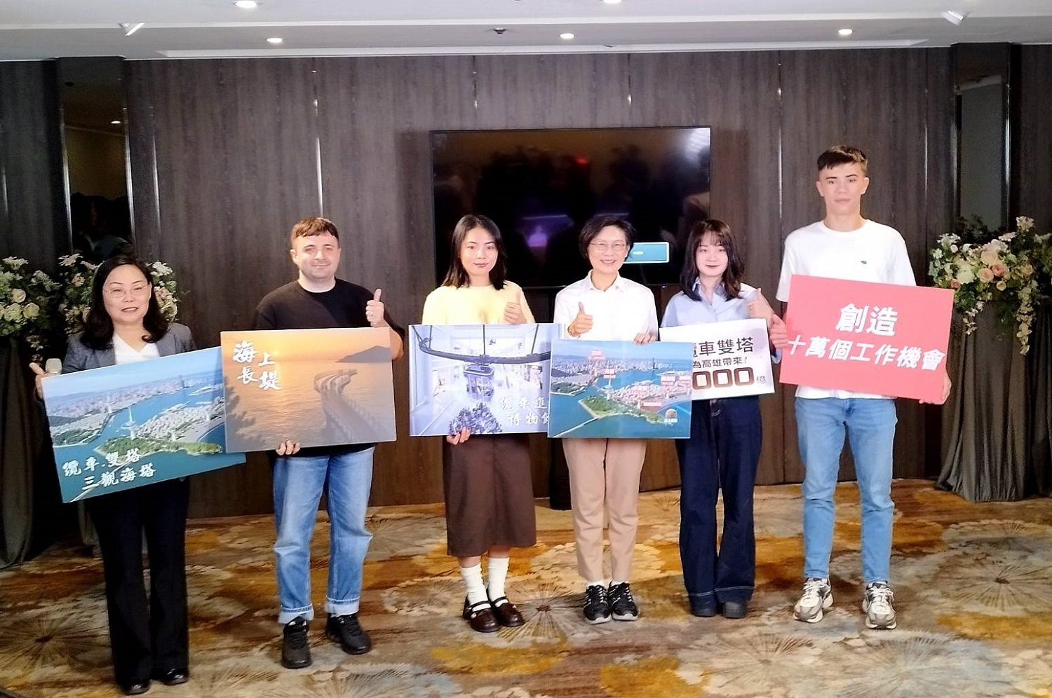 記者會於高雄福華飯店舉行,現場邀請多位國際學生共同參與,透過跨文化交流,呈現高雄如何從傳統港口城市走向世界舞台。林岱樺指出,高雄擁有優越的港灣條件,卻長期缺乏「一眼就能被世界記住」的代表性地標,「一纜二塔三黃金」正是補齊高雄邁向國際城市關鍵拼圖的重要一步。