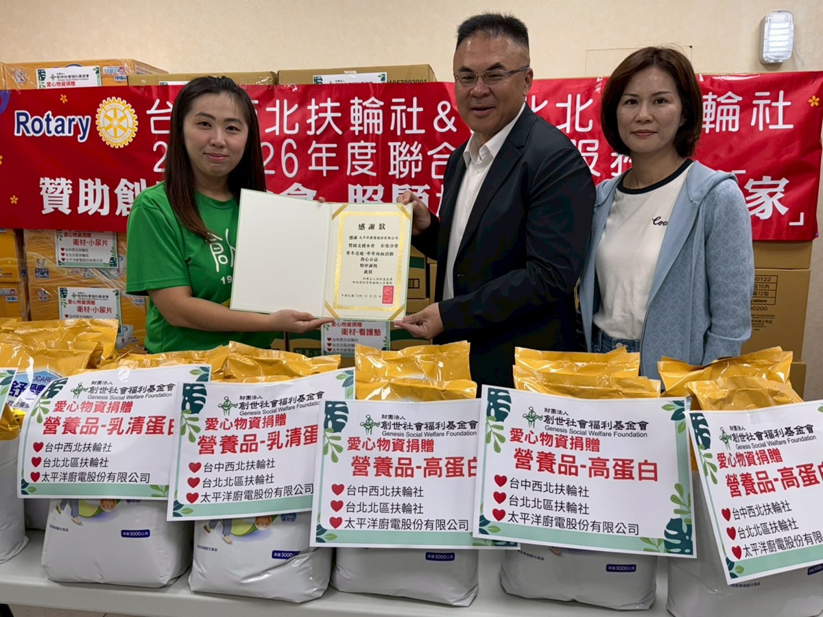 台中西北扶輪社、台北北區扶輪社與太平洋廚電股份有限公司長期投入在地公益服務,秉持「取之於社會,用之於社會」的精神,持續回饋社會、不遺餘力。台中西北扶輪社葉名焮社長、台北北區扶輪社王韋中社長與太平洋廚電股份有限公司陳柏滄董事長共同表示,在年終歲末、天氣轉冷的時節,看見許多弱勢家庭正默默承受更沉重的生活壓力。植物人家庭長期面臨照護與經濟的雙重考驗,更需要社會多一份理解與支持。希望透過實際行動,將關懷化為具體物資,陪伴創世基金會一同守護每一個需要被照顧的生命,讓愛在寒冬中持續流動,也為家庭帶來一點安心與溫暖。