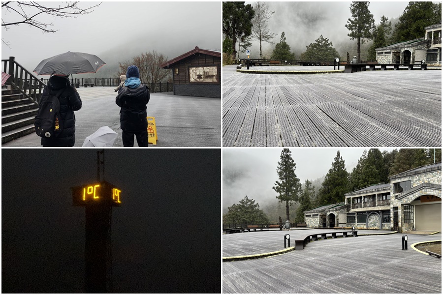 今天12月26日大陸冷氣團持續影響,太平山國家森林遊樂區清晨氣溫大約 1°C,6時30分許開始下起間歇性冰霰,遊客紛紛上山觀賞美景。林業保育署宜蘭分署提醒民眾,山區體感溫度偏低,路面濕滑,請留意保暖與行車、步行的安全。