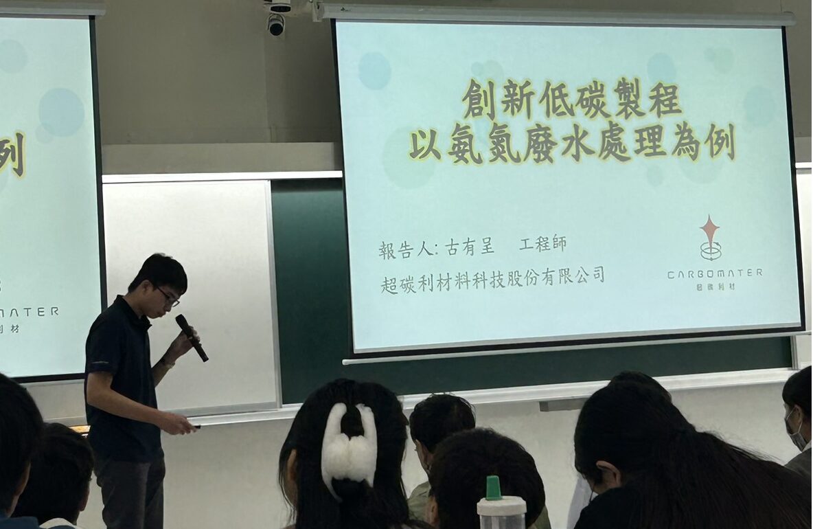 本次研討會聚焦科技產業突破性的碳捕捉與利用(CCU)技術與發展CO₂相關循環經濟。會中以處理半導體製程排放氨水-雙氧水混合(APM)廢水為案例,展示如何以CO₂作為可再用資源,將碳捕捉與廢水處理程序整合,不僅能有效去除廢水中的雙氧水與降低化學品使用,更可實現零廢棄排放與物質全回收。