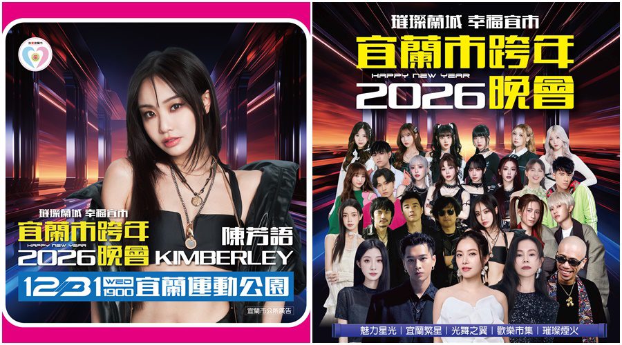 《2026璀璨蘭城 幸福宜市》跨年晚會卡司緊急調整更動!宜蘭市公所27日公告:晚會原定由王ADEN演出部分,已洽請廠商安排邀請全方位歌手陳芳語(Kimberley)參與演出。