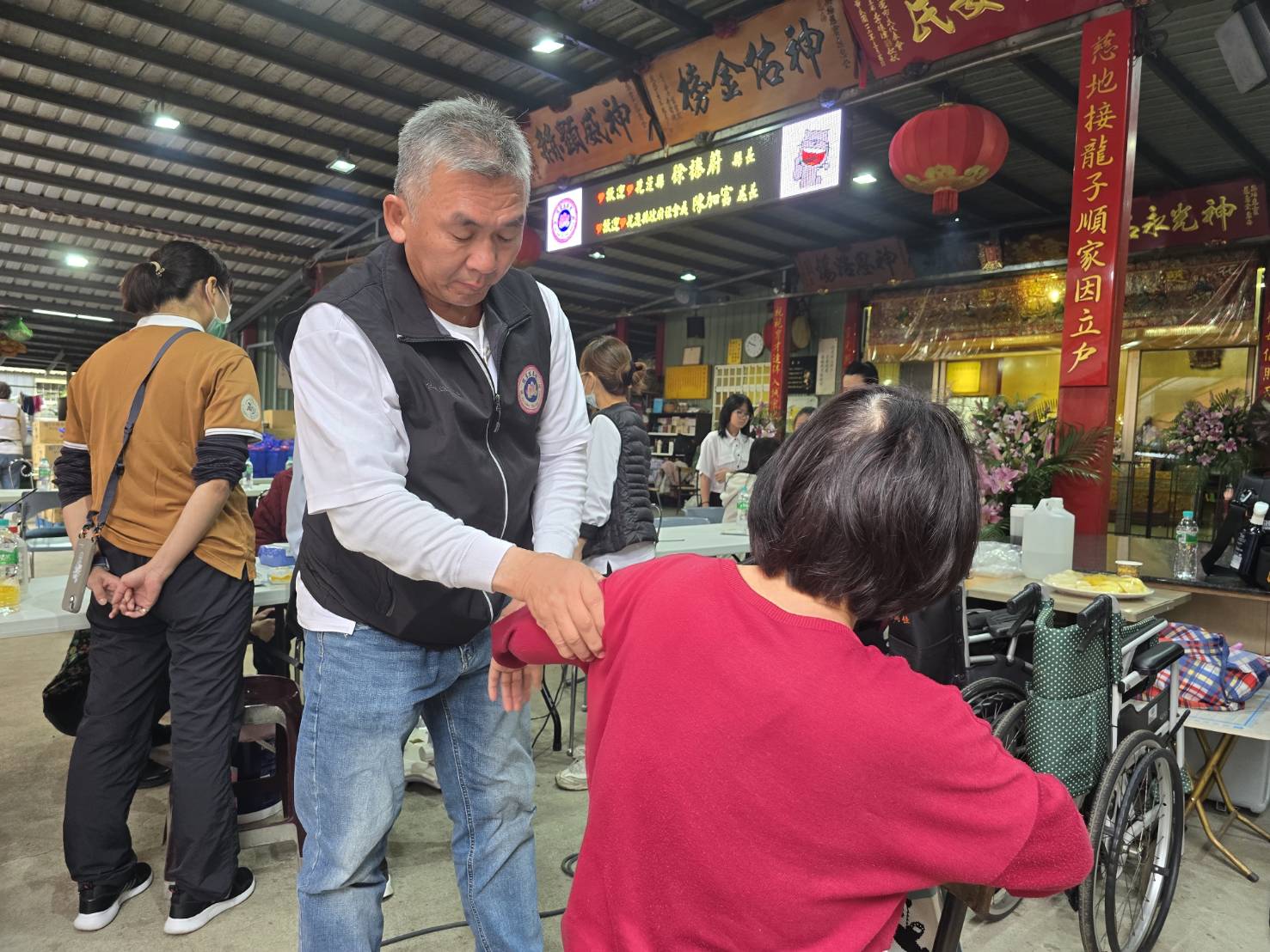 ▲長者在無極慈靈慈惠堂前的按摩,接受人與神的祝福。