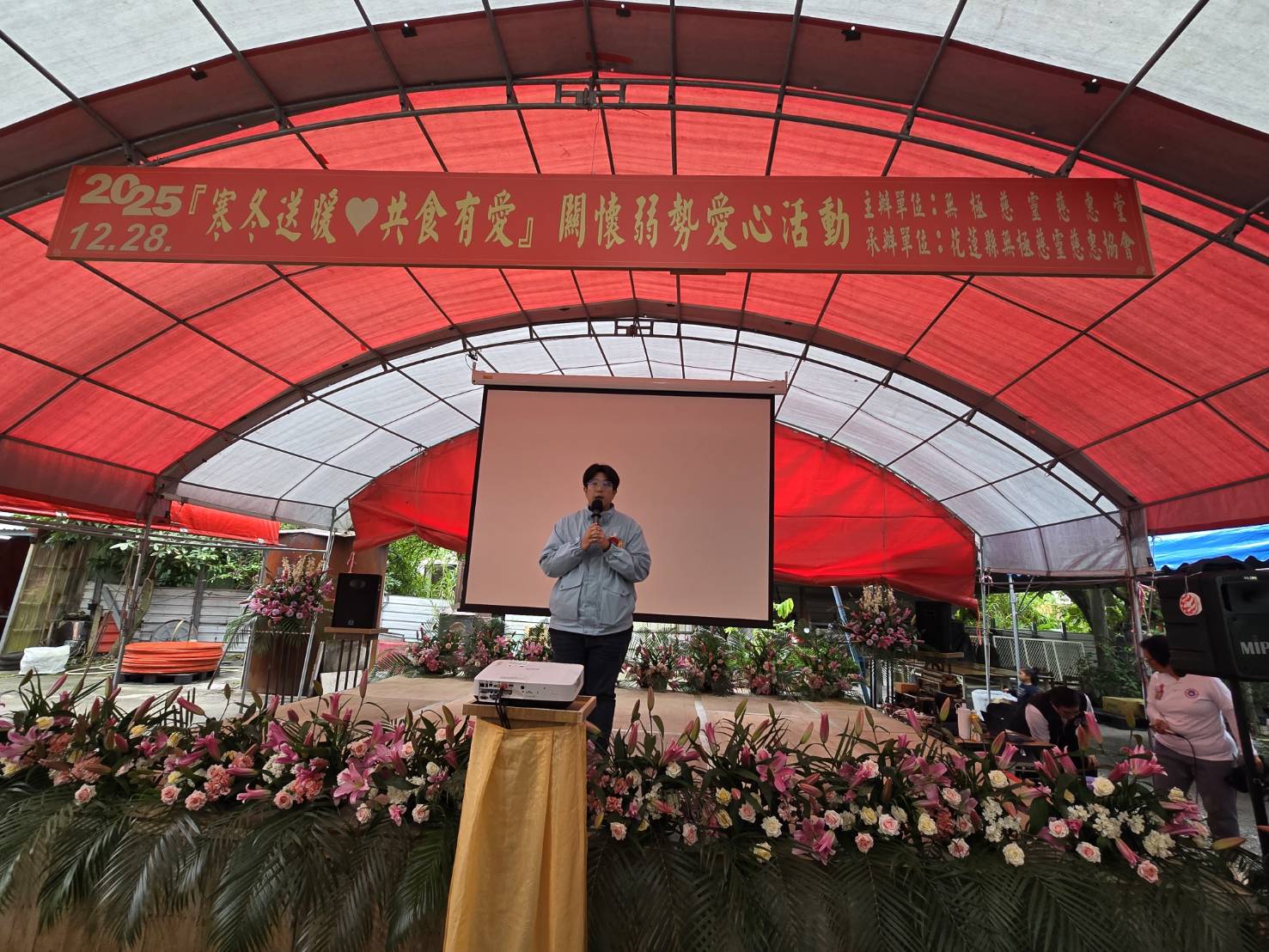 今天的活動由無極慈靈慈惠堂主辦、慈惠協會承辦。內容包括,樂活健康操、健康守護站、公益中醫講座、幸福共食餐、發放福氣袋等,豐富多元。堂主彭進益說明,歲末冬寒,以信仰為根、慈悲為行的慈惠協會首度推出「寒冬送暖.共食有愛」活動,期盼透過慈善路徑,將宗教善美的力量融入社區,走進孤貧弱勢家庭,進而弘揚母娘慈悲為懷的精神,讓弱勢感受「天地有情.人間有愛」,不再孤單!