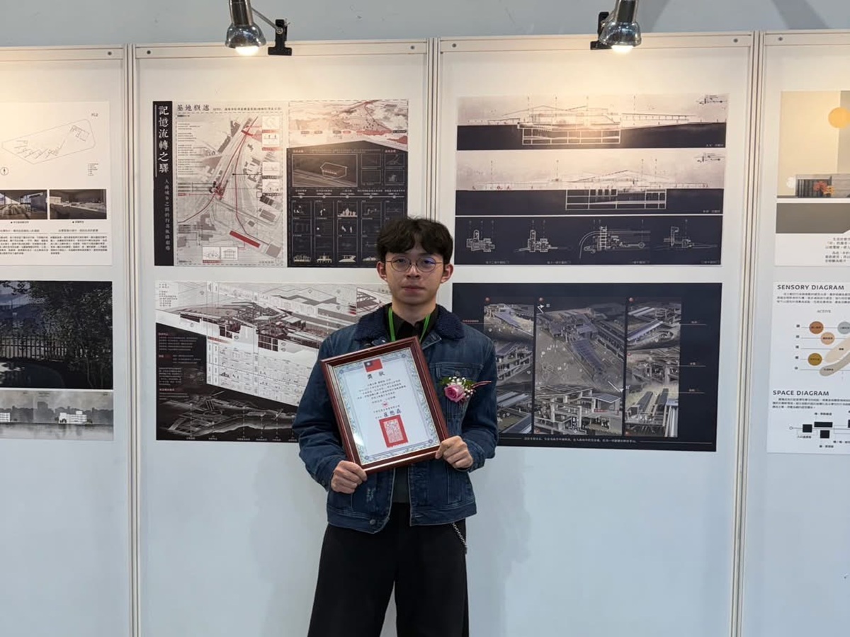 空設系講師紀彥竹表示,此次參加「2025學生競圖-幸福建築(美好建築)」比賽,大四生黃朝瑞的作品「記憶流轉之驛-人與城市的行為軌跡劇場」勇奪特優,獎金新臺幣2萬元;大三生王羽婕的「巷流構築-以生活路徑形塑幸福聚落」、大三生黃佩誼的「穿行於巷影之間的微光記憶-城市縫隙中的生活流動與共居構築」,以及大四生邱家凱的「巷隙漫流」,三件作品都獲頒佳作。學生亮眼的表現,顯見大葉大學空設系深耕「師徒傳承」與「實作學習」的教學模式,成功引領學生從概念發想到設計深化,在競賽實戰累積就業競爭力。