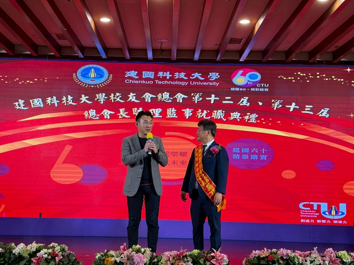 現場席開60桌,為今年60週年校慶畫下完美句點。張瑞泰從卸任理事長林維毅手中接過印信,開啟校友服務新篇章。張瑞泰現職為卡登實業董事長,在營造業擁有深厚背景,為人海派務實,長期投身社會公益,曾任國際獅子會國際理事、行政院政務顧問,處處展現卓越領導力。他表示:「這份重擔是榮譽也是責任,我們將秉持『共創事業榮譽』的精神,持續擴大校友總會影響力,並加強學弟妹的就業鏈結,讓『建國人』在各行各業發光發熱!」。