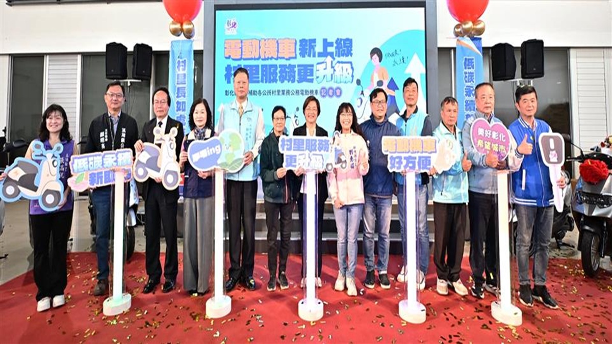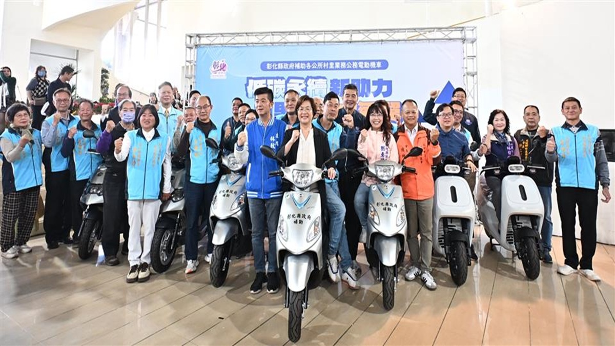 為提升村里服務效能,同時落實環境永續與淨零碳排目標,彰化縣政府29日上午於縣府中庭舉辦「電動機車新上線、村里服務更升級-彰化縣政府補助各公所村里業務公務電動機車記者會」,縣長王惠美表示,感謝議長謝典霖及所有議員對經費的支持,縣府推動各鄉鎮市公所電動機車補助計畫,公所可依地方特性及需求,採購村里業務公務電動機車,全縣共591村里,每輛補助上限6萬2,000元,總經費3,664萬2,000元,將低碳交通落實於各村里的公共服務。
