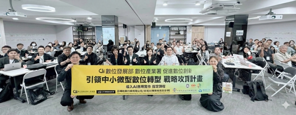 ▲數位發展部數位產業署促進數位創新(引領中小微型數位轉型戰略攻頂計畫)(圖/亞威AI商務應用教育學院提供)