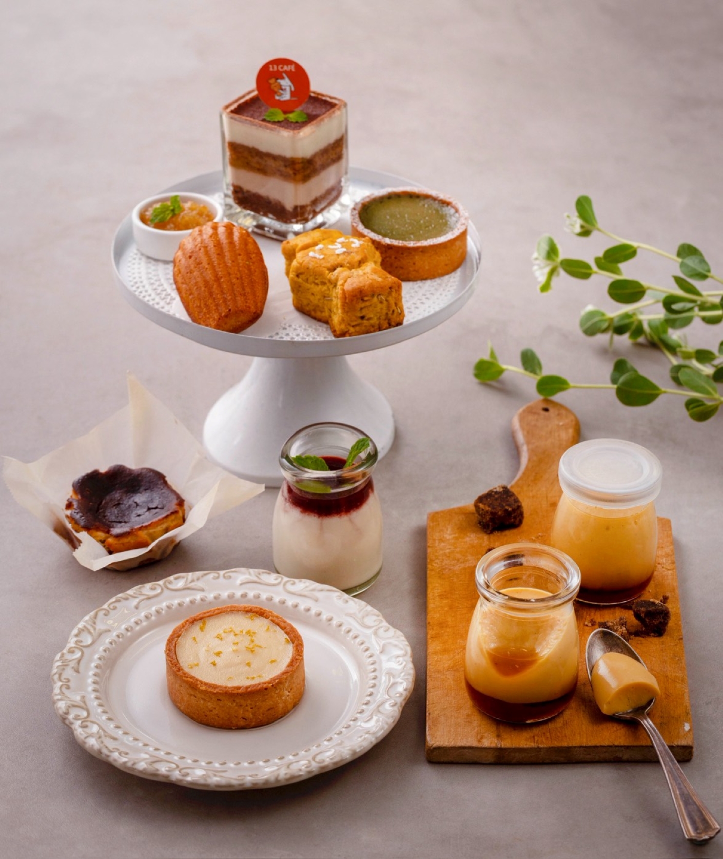「13 CAFÉ」特別與「新北市設計中心」合作,重新設計品牌logo,並獲台新銀行贊助,由擅長綠裝修的邱美瑄設計師以考古學中「文化層」結合「永續」概念轉化為空間語彙,運用國產天然塗料鏝抹出文化層牆面,重現考古現場中深埋千年的紋理層次與貝殼陶片,讓訪客彷彿進入考古挖掘現場,另搭配「台灣木材」標章認證的國產材及循環修枝木家具落實永續精神,並提升場域價值。餐點攜手「里仁」、「玄米大吟釀」及「甜素-Sweet Vegan」等夥伴,貫徹「友善環境」的核心價值。餐點結合考古元素,點綴逗趣的台新銀行Richart餐點小卡,增添活潑氣息,並選用無農藥化肥的台灣米與在地好食材,將大自然的純粹滋味端上餐桌。甜點則有「文化層考古米蘇」以及造型復刻鎮館之寶的「人面陶罐司康」等,堅持無奶蛋、無添加,讓民眾在享用美味的同時也能兼顧健康。飲品推薦以頂級大吟釀級玄米果醋、蝶豆花及新北特色石花凍調合的凍飲,堆疊出考古挖掘般的驚喜口感。