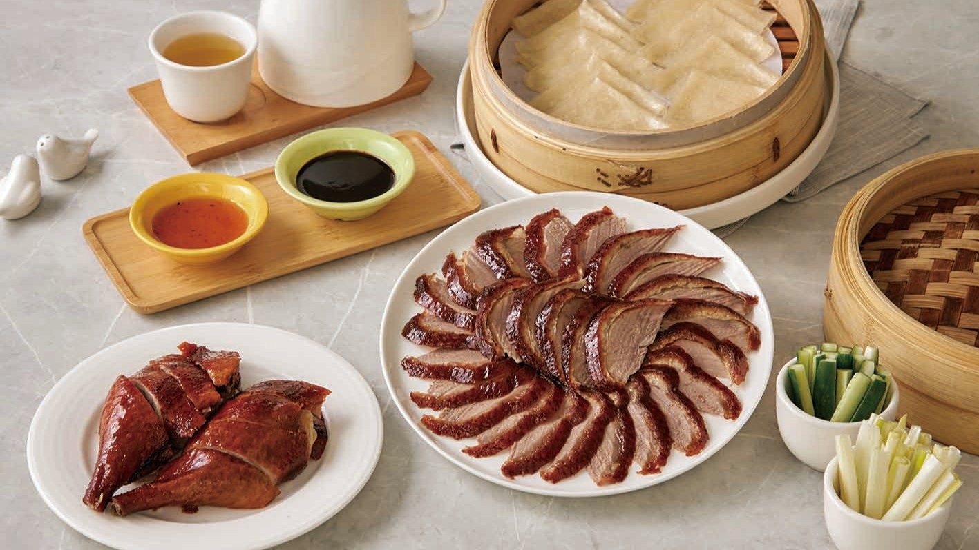 ▲以港式甜品聞名的「糖朝」也推出10人桌菜,包含明爐櫻桃片皮鴨、港式點心,並加贈西瓜汁與經典原木桶豆花。( 圖 業者提供 )