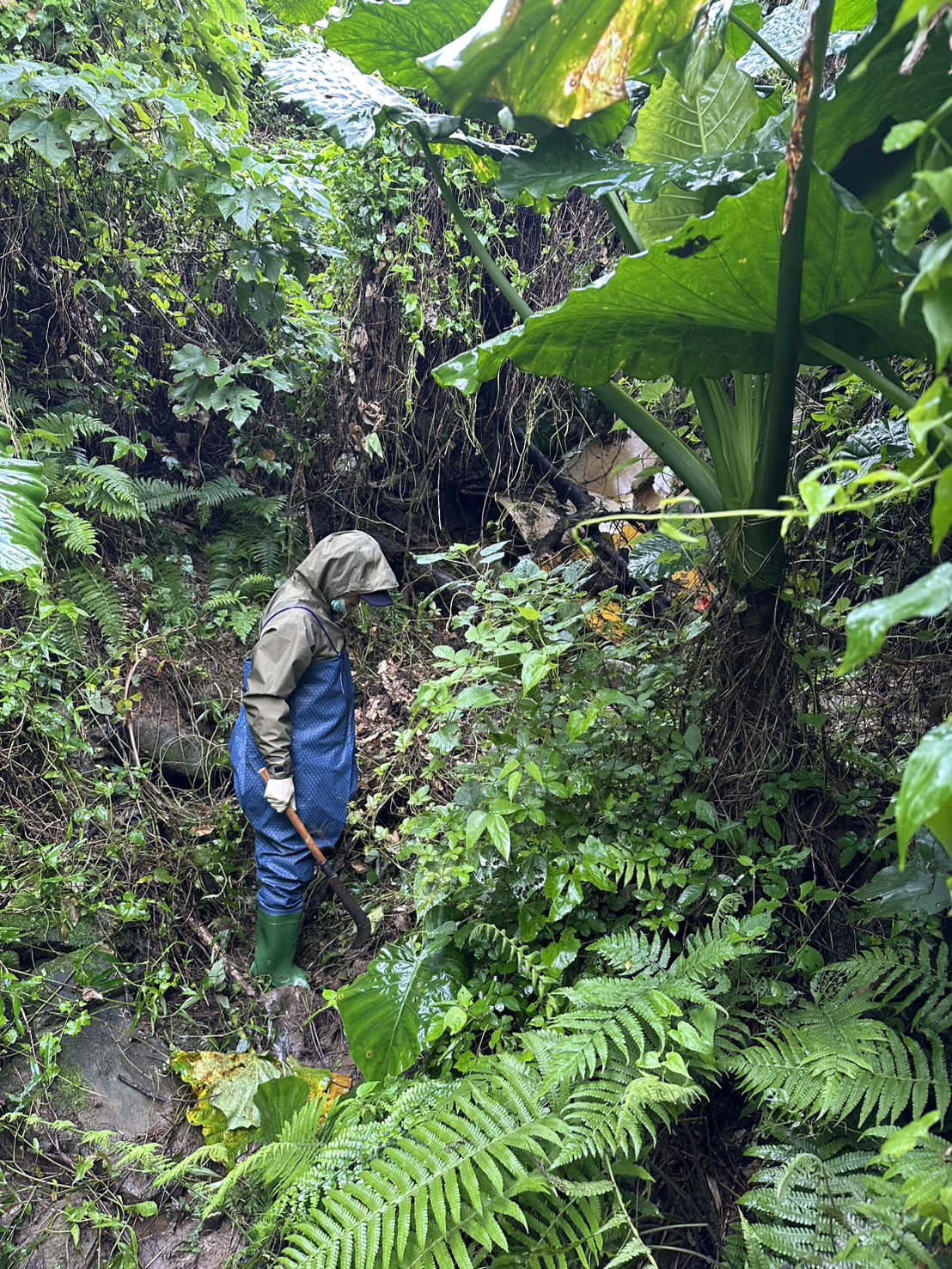 ▲稽查人員排除萬難,努力追查污染源。(圖/新北市環保局 提供)