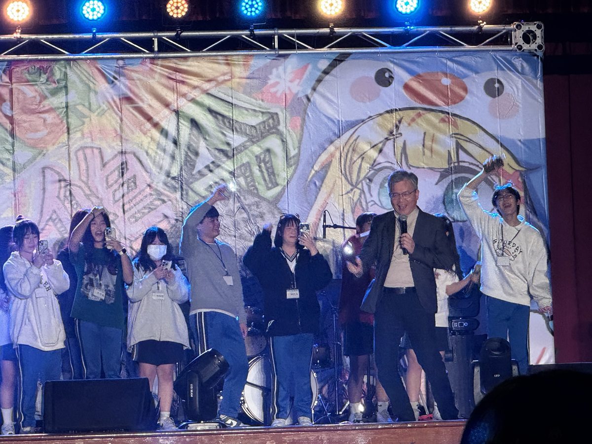而壓軸登場的神祕嘉賓溪高大家長~李明昭校長,他祝福所有在場師生新年快樂,並感謝學務處以及班聯會籌備本次歌唱大賽的辛勞,最後他也獻唱「愛拚才會贏」鼓勵所有溪高人,信心滿滿迎接2026年的到來。