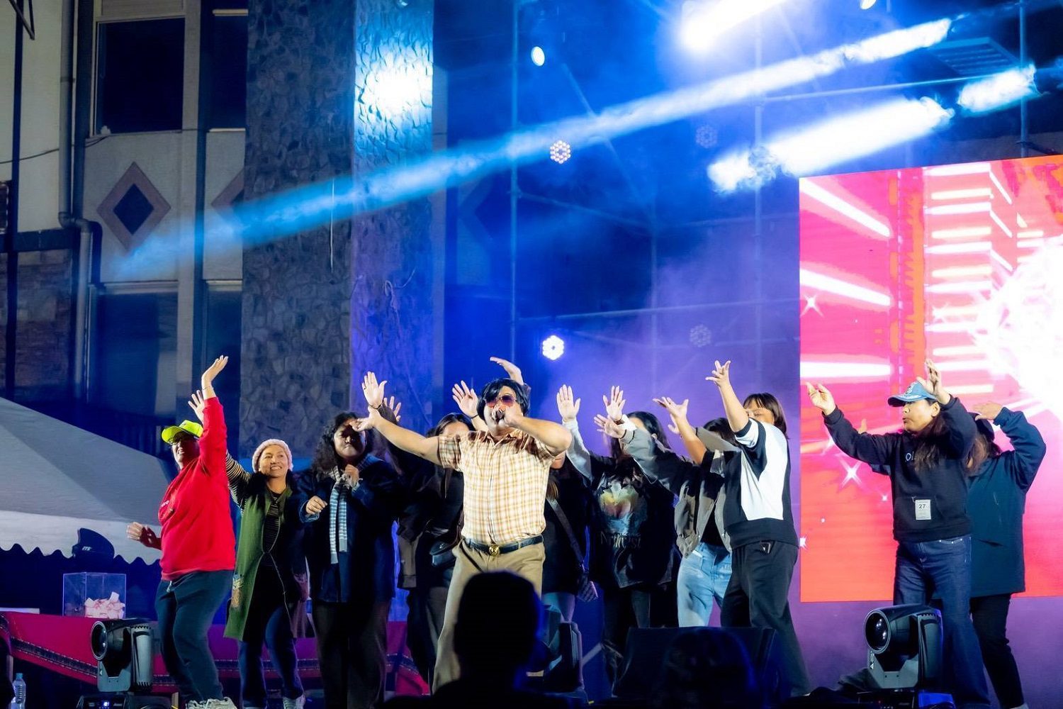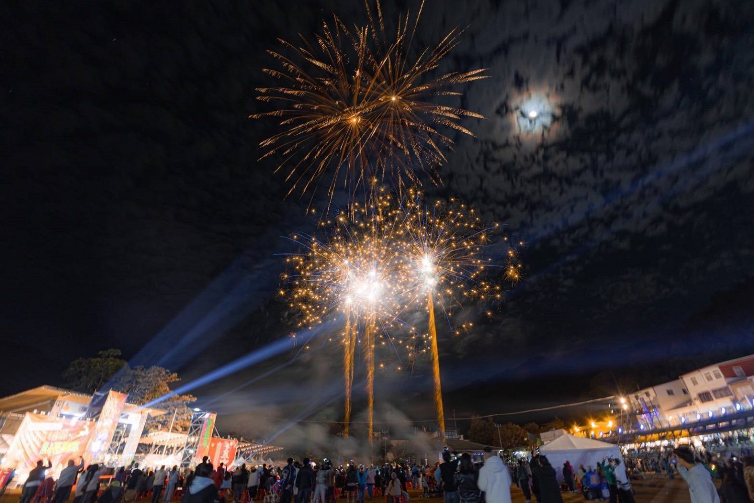 活動自下午起陸續展開,舞台表演、市集攤位與人潮逐漸匯聚,現場燈光與音樂交錯,為山城夜色增添節慶色彩。晚會演出陣容橫跨世代與曲風,包含八角塔男聲合唱團、薩皿安、黑旋風、巴大雄及沈文程等知名表演者輪番登台,從合唱、原民音樂到流行金曲,陪伴民眾一路走向倒數時刻,讓跨年夜舞台精彩不間斷。