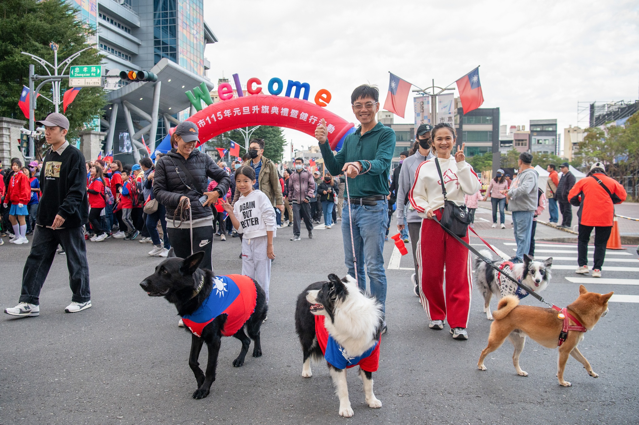 嘉義市政府於上午7時舉行115年元旦升旗典禮暨健行活動,由嘉義市長黃敏惠率領市府團隊,與各界貴賓及市民一同參與。活動現場旗海飄揚,不少民眾身著國旗裝、手持國旗到場,亦有市民攜帶穿著國旗服飾的毛小孩一同健行,在輕鬆熱鬧的氛圍中迎接新的一年,展現市民對國家與城市的情感連結。