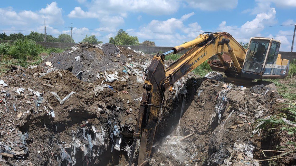 經現地開挖,確認遭掩埋大量土木或建築廢棄物混合物,面積約352平方公尺、量體達1,760立方公尺,嚴重衝擊河川生態,後續透過數據資料勾稽與跨縣市溯源,發現不法集團自臺中市非法轉運站載運廢棄物至嘉縣棄置的犯罪事實,最終由臺中地檢署指揮偵破不法集團。