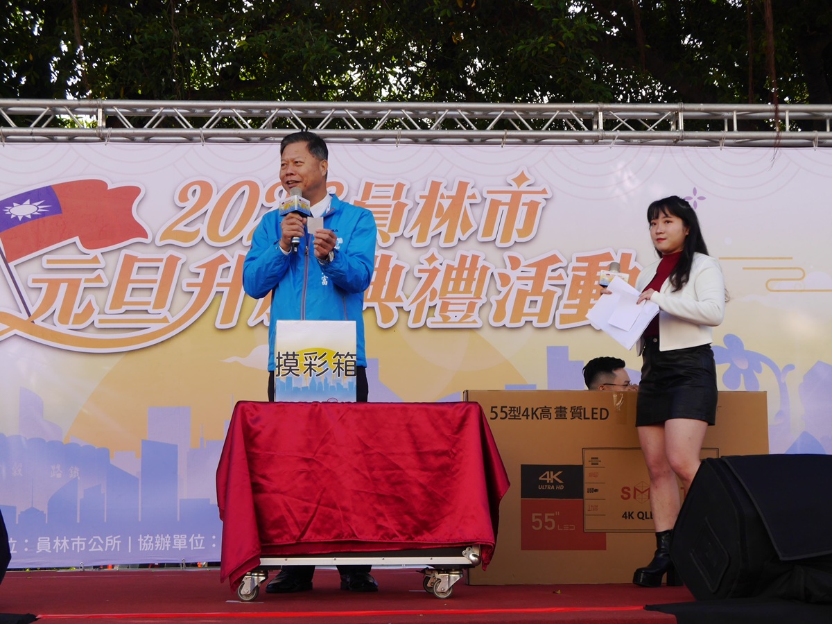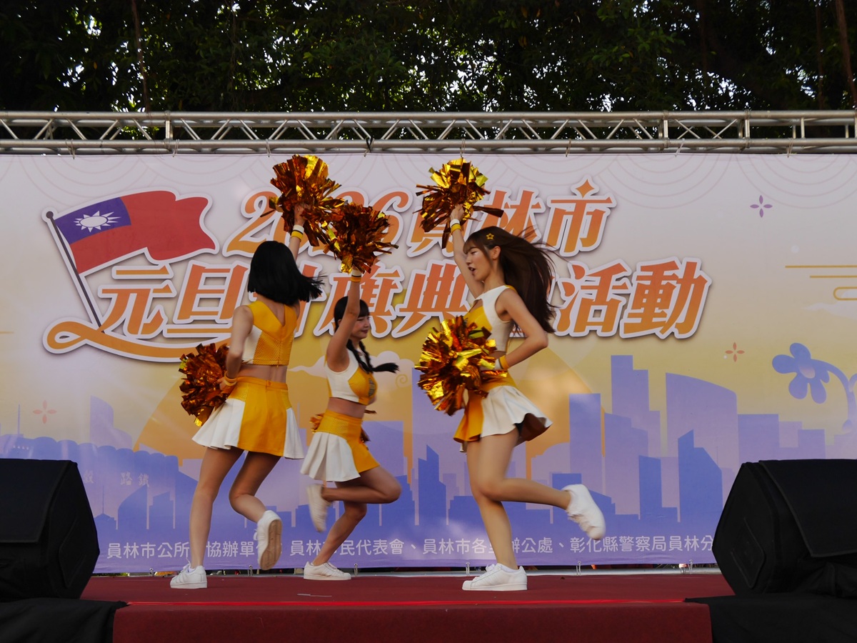 開場由 Freedom 競技啦啦隊帶來活力四射的熱情表演,象徵新年朝氣與希望,為元旦慶祝活動揭開序幕;在國歌齊唱的莊嚴時刻之氣氛下,隨後進行升旗典禮,現場在員林市代理市長賴致富、彰化縣長王惠美及市民代表會張國良主席、各位代表暨本市各里長暨貴賓行最敬禮下,國旗冉冉升起,不僅凝聚市民對國家、對城市的認同與祝福,也共同為員林祈願新的一年市政順利、市民安居樂業。現場並邀請扯鈴娛樂家謝東磬及人氣團體中信兄弟啦啦隊接力登台演出,精采表演輪番上陣,讓元旦清晨充滿歡笑與活力。