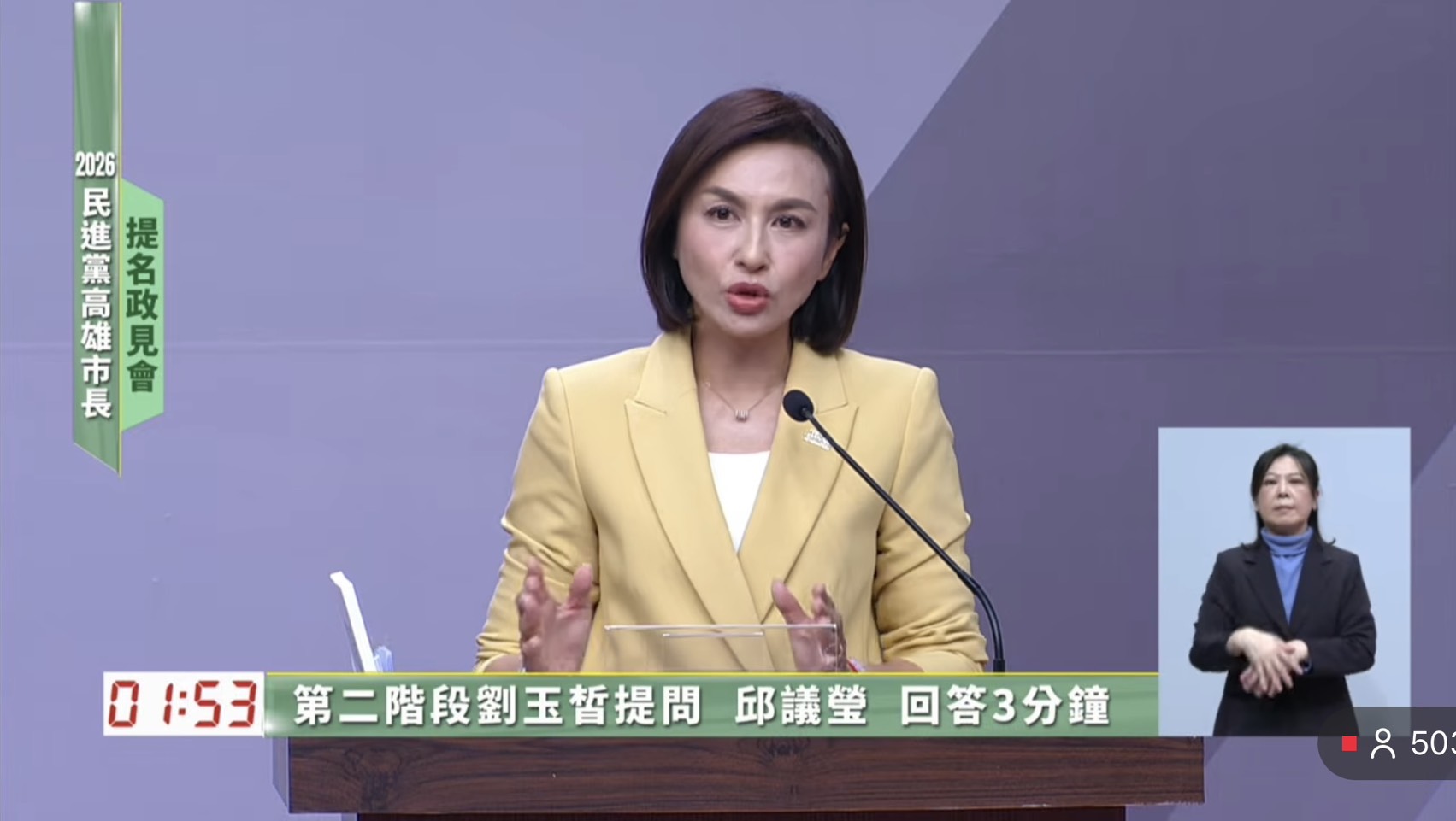 《高雄綠營初選政見會過招 邱議瑩「政策控」上身、用原民族語開場展氣勢》