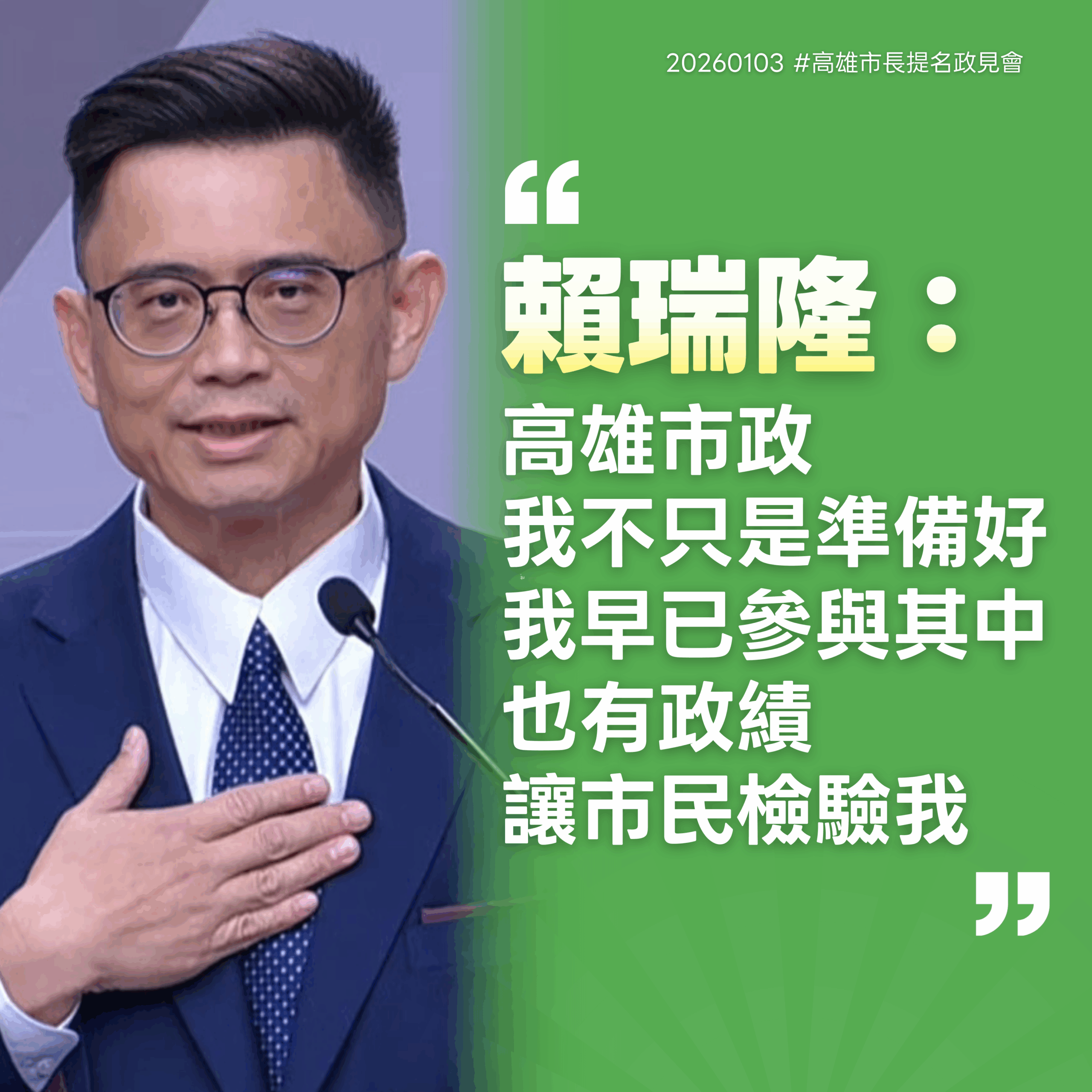 【記者蘇莉湘 / 高雄報導 】 賴瑞隆在政見發表會提問階段強調,自己具備「政務官首長性格」,是從國會助理基層起步,並在高雄市政府擔任新聞局長、海洋局長等長達10年。他回憶在新聞局長任內,成功協助前市長陳菊在「朝小野大」的困境中突圍,並助其奪下《遠見》五星級市長評鑑,展現強大的政治協調能力,還是連任民進黨中評會主委且無派系競爭,證明他能獲得跨黨派與各界的深厚信任。