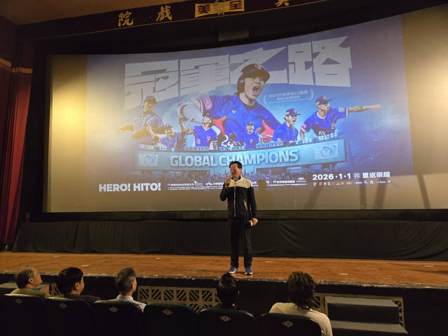 臺南市政府體育局陳良乾局長表示,非常感謝全美戲院的美意及大力支持臺南市三級棒球隊。棒球不僅是臺南重點發展的體育項目之一,更是凝聚城市認同與世代情感的重要力量。臺南市具備全國首屈一指的棒球場地亞太國際棒球訓練中心,該場地不僅是培育基層與菁英選手的重要基地,亦成功承辦多項國際賽事,包含2025第八屆WBSC世界盃少棒錦標賽及2025年第12屆亞洲U15青少棒錦標賽等知名國際賽事! 臺南市政府體育局表示,臺南長期深耕三級棒球發展,從少棒、青少棒到青棒,持續透過完善賽事制度與多元培育管道,打造選手穩健成長的舞臺,其中「三級巨人盃棒球賽」更成為基層球隊重要的年度指標賽事。此次透過觀影活動,讓年輕選手近距離感受國家隊站上世界巔峰的歷程,期盼將冠軍精神內化為持續努力的動力,為臺南培育更多優秀棒球人才。未來體育局也將持續推動三級棒球與國際交流,讓臺南作為「棒球城市」的特色品牌能持續發光發熱。