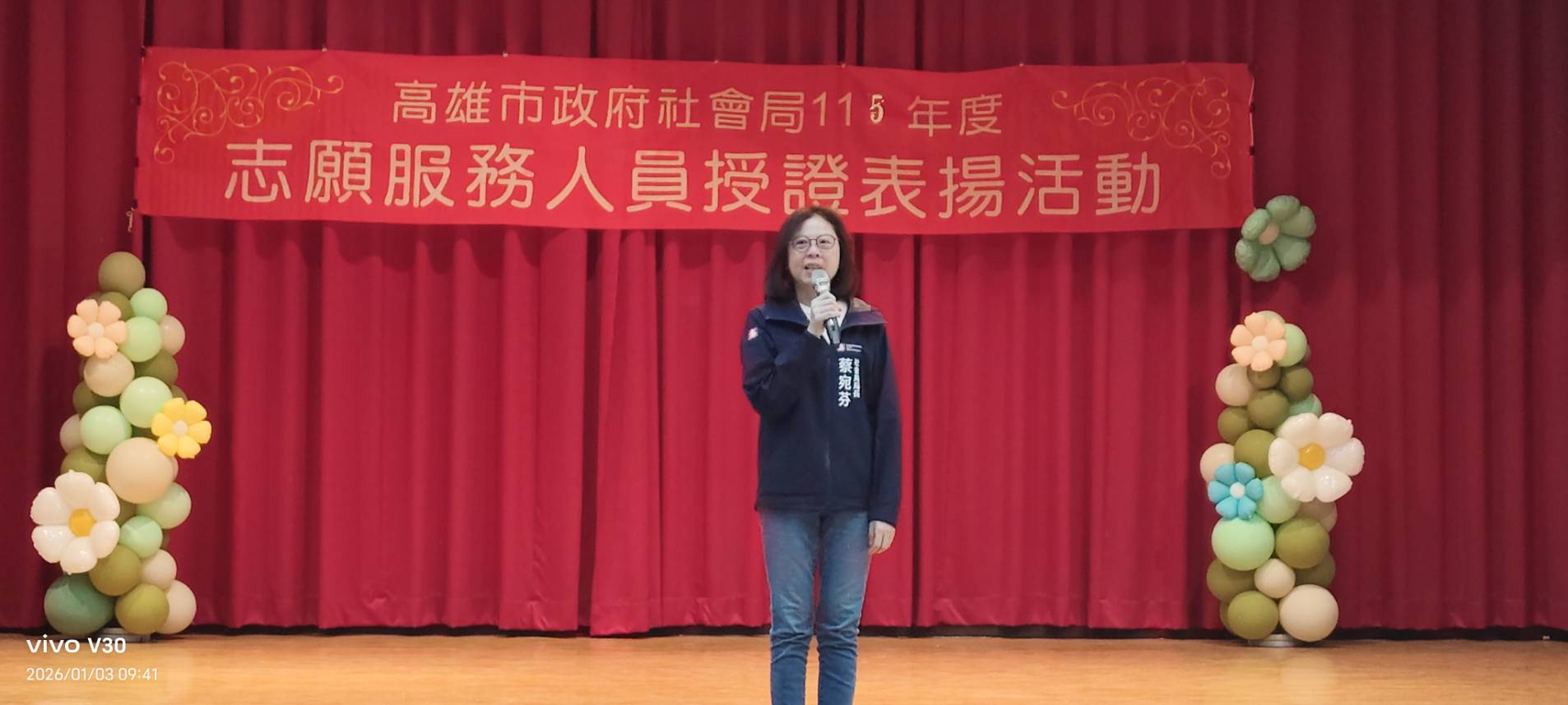 社會局長蔡宛芬表示,志工們將一生累積的專業與人生智慧投入社會福利服務,不僅提升政策執行效能,更為服務對象帶來即時而溫暖的支持。目前高雄市志工人數已突破11萬人,是城市治理與社會凝聚力的重要支柱。未來市府將持續強化志工培力與招募,期盼更多市民投入志願服務行列,攜手實現「全民一起做志工」的願景,讓善的循環在城市中不斷延續。