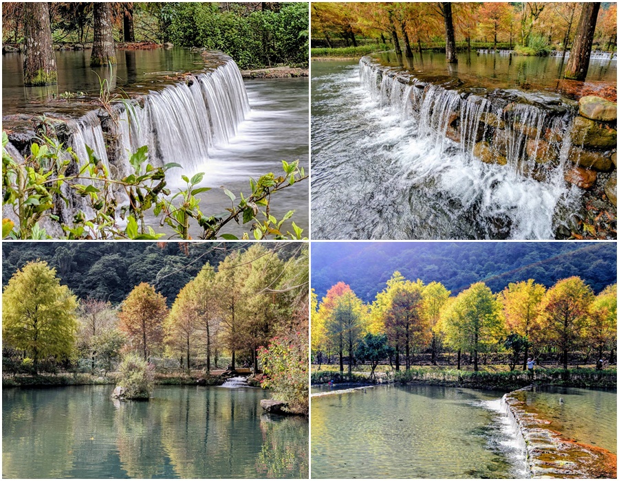 每年12月到翌年1月,三層坪的落羽松由翠綠轉為金黃,再換上橙紅新妝,散發出陣陣魅力,白天時分再與藍天白雲倒映在層層水塘,更為美甚。