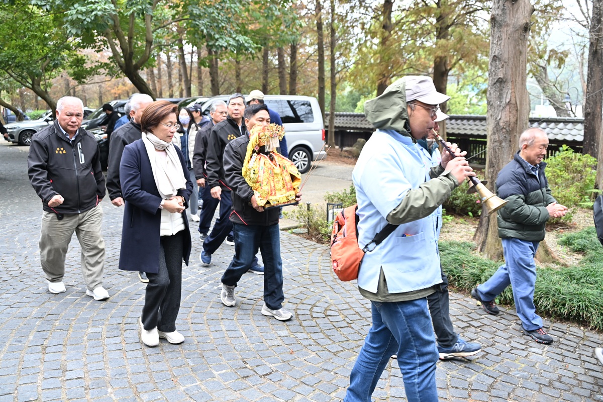 恭迎祝禱儀式於今日上午於苗栗「寶元紀之丘」茶文化主題園區舉行,現場備香案,以香花、素果、淨香之儀,由王縣長率眾福安宮信眾親自焚香祝禱,現場氣氛莊嚴喜悅,隨後進行園區巡禮與石雕神尊灑淨儀式,正式將3尊聖像接迎回彰化伸港福安宮。