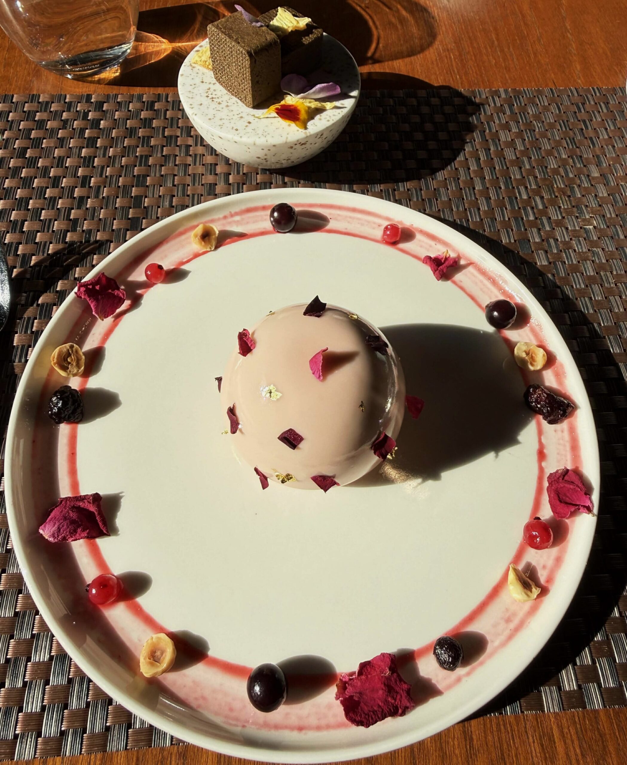 甜點栗子提拉米蘇是桌邊服務,利用雪莉酒與君度香橙利口酒搭配栗子與OREO黑白餅乾,忽隱忽現的滋味在口中跳起華爾滋;野莓慕斯花園則是蔡鎮資深主廚的發想,利用多種莓果的自然發酵出泥土芳香,搭配上法國奶油,味道裡充滿了花園裡的清香,酸甘甜美的滋味,直叫人片刻都不想歇止。最後SORBET的紅玉紅茶鳳梨酥更是甜點裡的潤滑劑,搭上咖啡或茶品,人生又夫復何求呢。