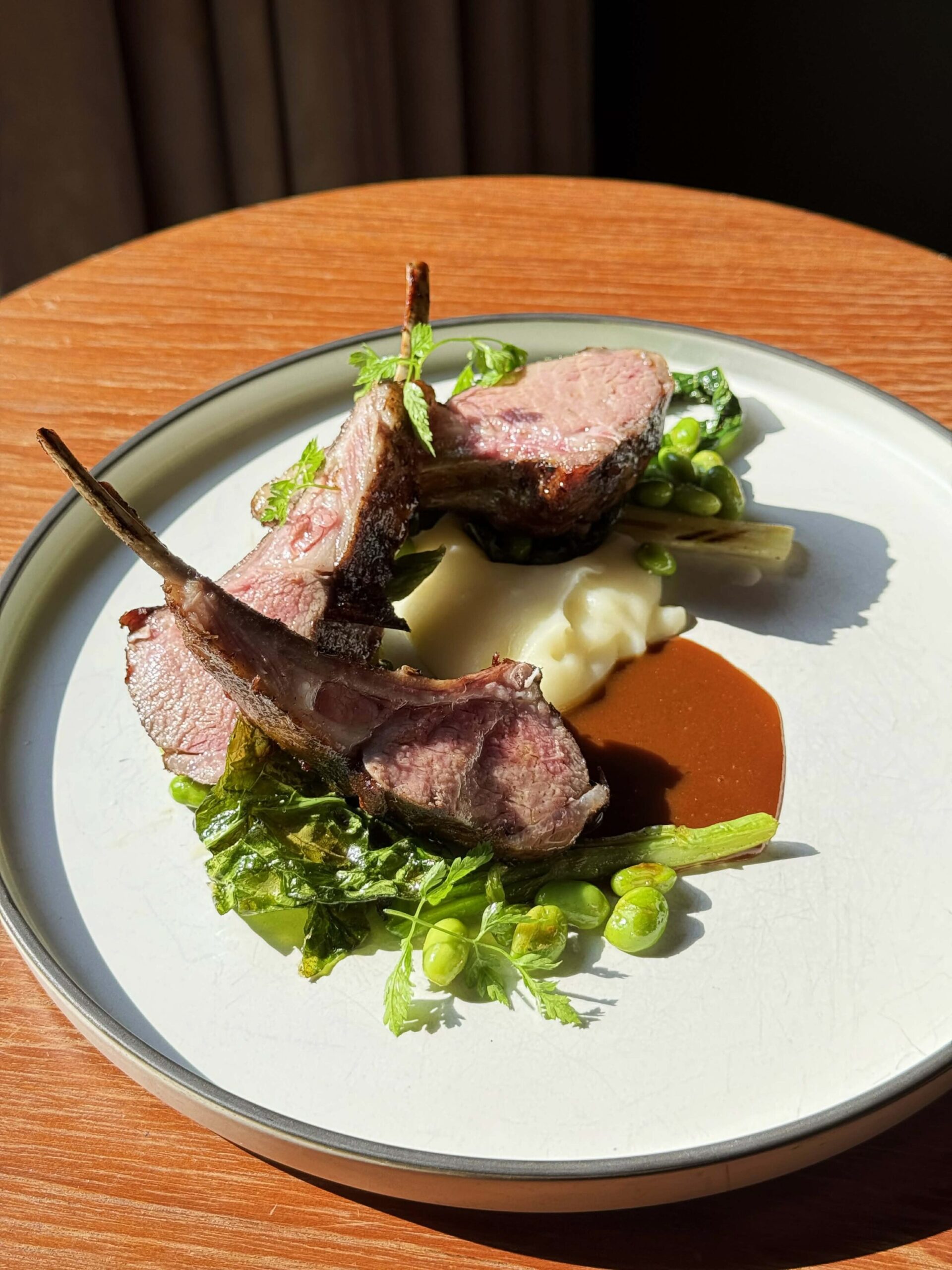 高地和羊是蔡鎮主廚的拿手菜,曾經一舉奪得料理比賽佳績與聯合報500盤推薦。之所以用「手指灼燒」源自一段義大利的經典軼事: 因為太美味,人們總會迫不及待以手取食,於是忘記了溫度,也忘記了小心翼翼。 資深主廚蔡鎮將這份傳統帶回台北,以台灣剝皮辣椒融入阿根廷醬汁裡,入口微辣回甘。 食材選用許多米其林餐廳主廚指定使用的傳奇級羊肉 – 高地和羊羔羊排,以百里香、迷迭香與大蒜等多種香料醃製,再以炭火慢烤,外脆內軟。