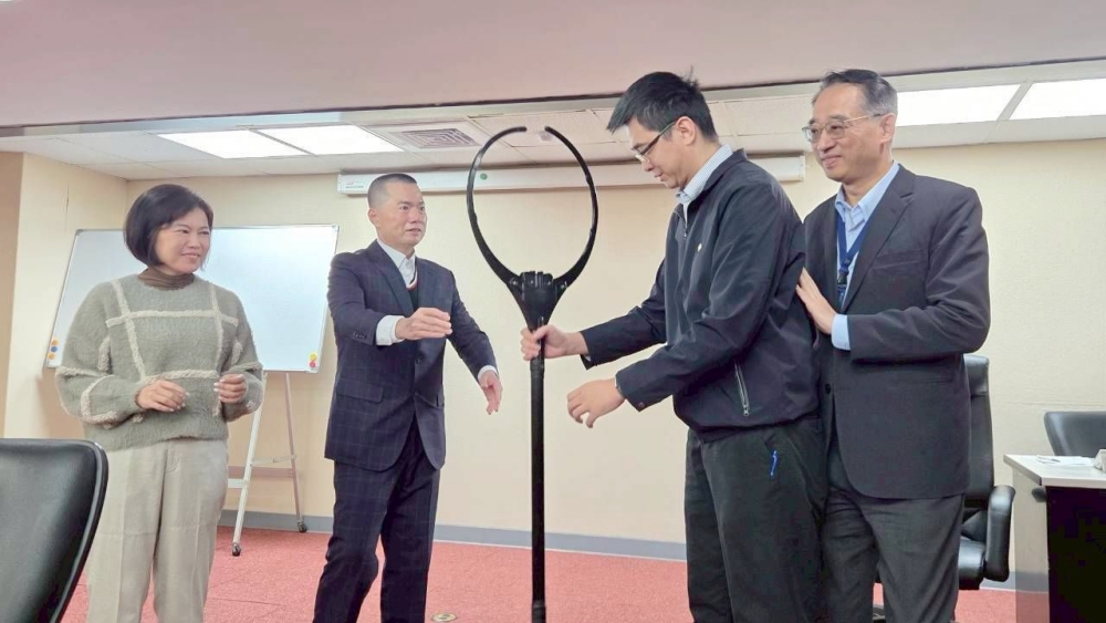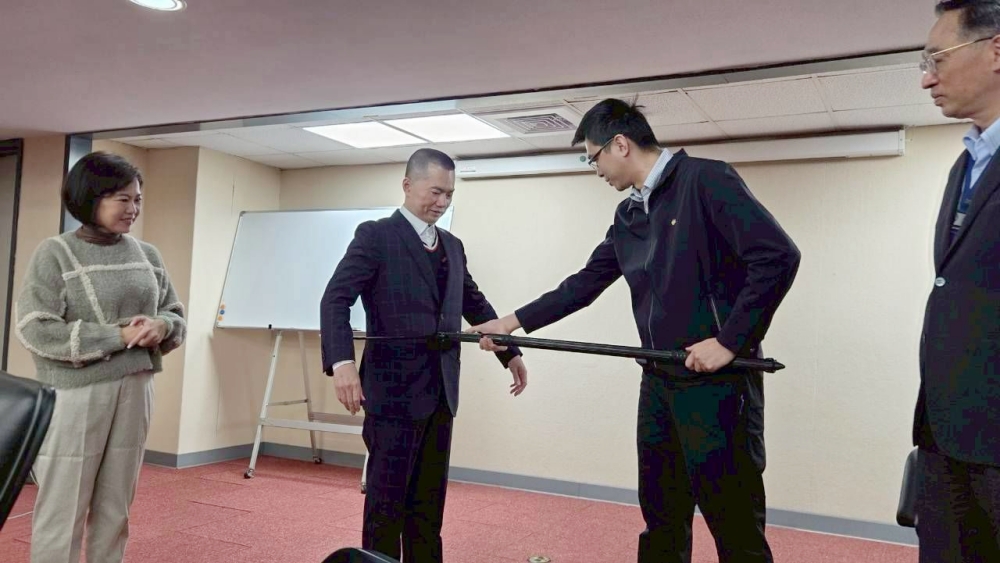 ▲市政顧問陳啟宏贈送北捷新型防爆叉。(圖/業者提供)