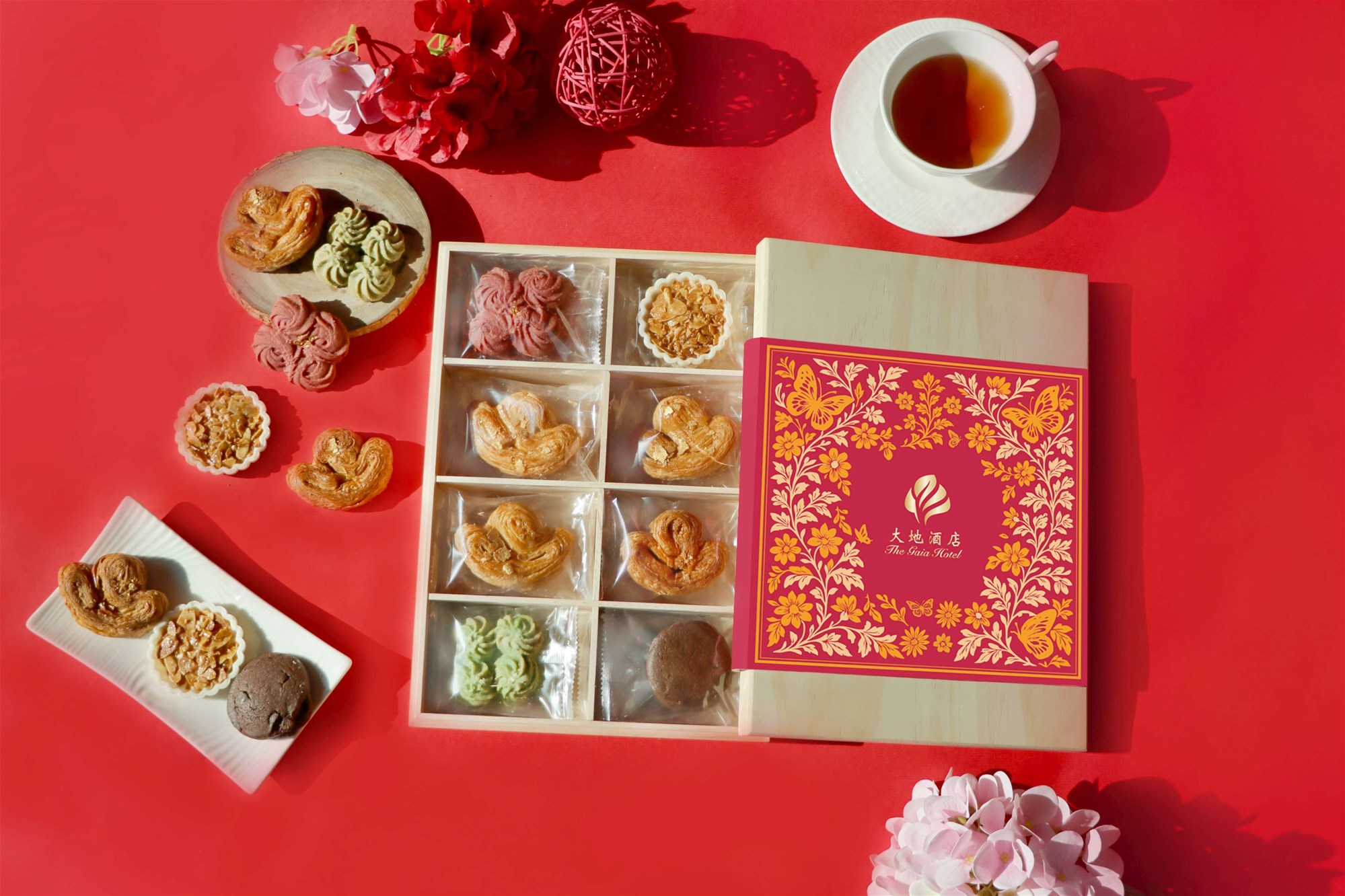 【瑞馬豐年禮盒】由大地酒店李建嶔主廚團隊精心打造,內容一次收錄五種風味,從酥香丹麥酥到濃郁可可餅乾,兼具層次與口感,象徵新年五福臨門、豐盛一整年。整體風味設計兼顧傳統年節喜氣與現代精緻口味,適合節慶贈禮或闔家共享。木盒設計不僅美觀,使用輕質原木打造,食用後仍可重複利用,增添居家生活便利性,實現環保永續理念。