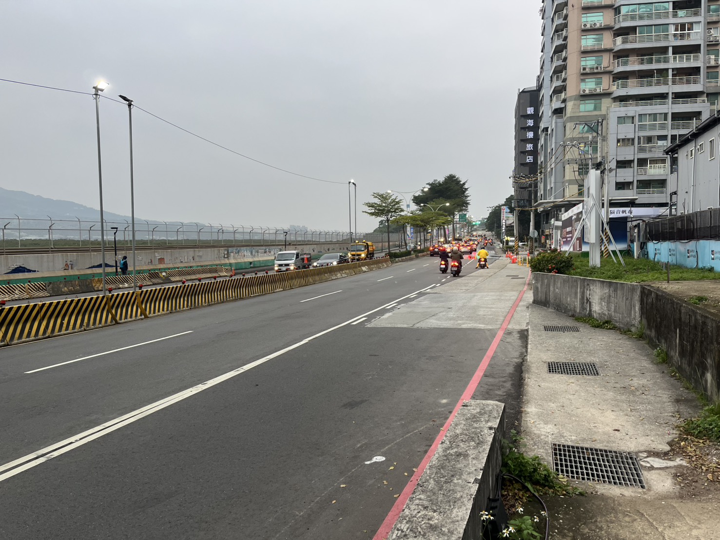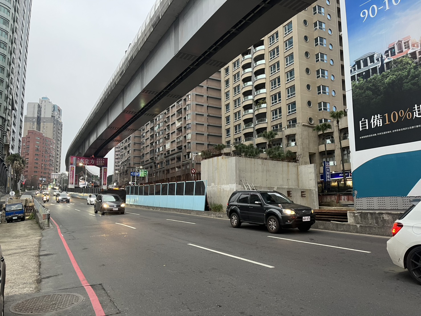 新工處表示,目前淡金路高架橋已完成橋梁基礎、墩柱等下部結構,為降低交通影響,將於夜間施作上部節塊吊裝作業,預計自1月8日起至3月15日止,夜間10時至隔日清晨6時進行施工,將封閉淡金路與中正東路交叉口至坪頂路口部分路段。