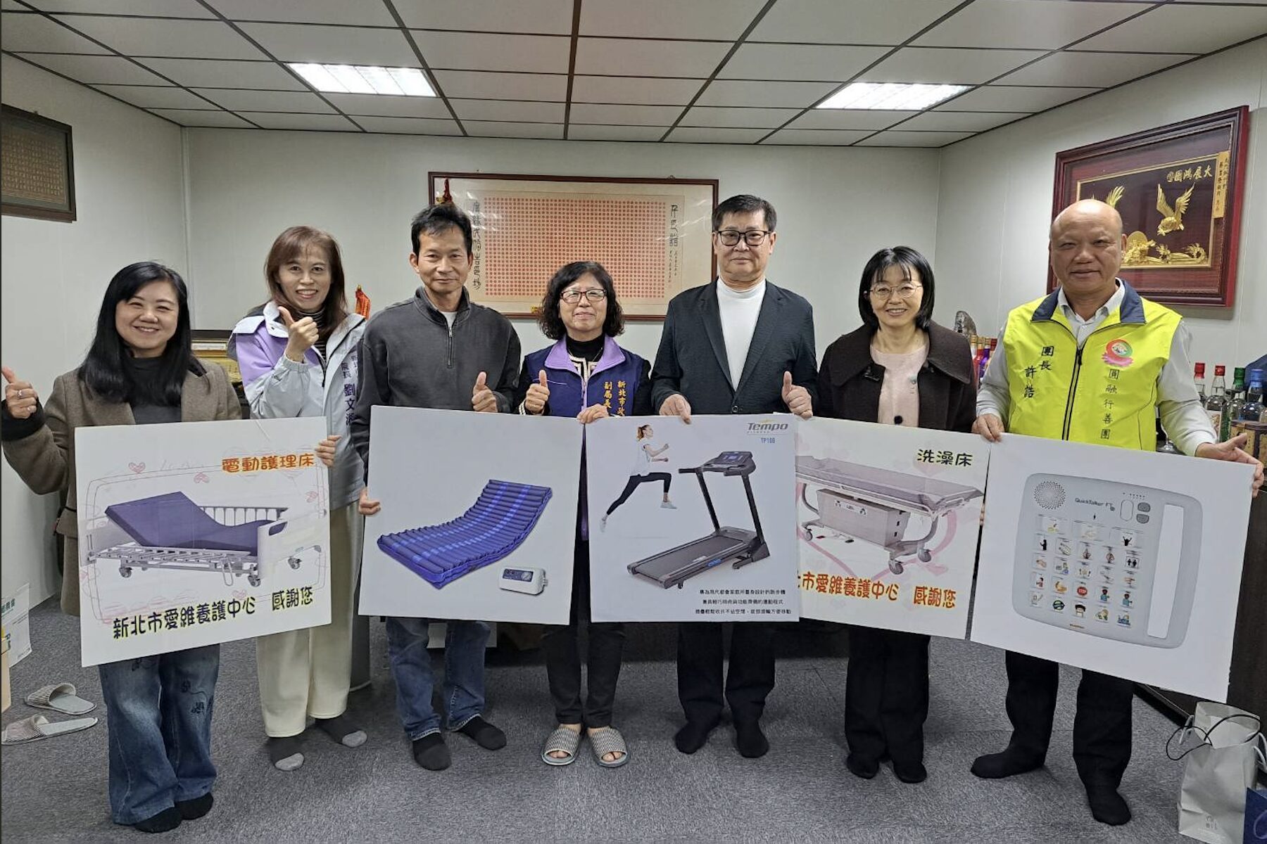 圓融行善團團長許誥於7日媒合善心友人謝坤樹及蔡吉隆,捐贈40萬元的復健醫療器材,給八里愛心教養院及愛維養護中心兩家身障機構,為八里山上偏遠院生增添最需要的復健醫療器材,提供院生更完善的復健醫療協助,由社會局副局長許秀能、天主教永和耕莘醫院長照副院長許瓊文、八里愛心教養院院長劉文湘和愛維養護中心主任簡美婷等人代表受贈。